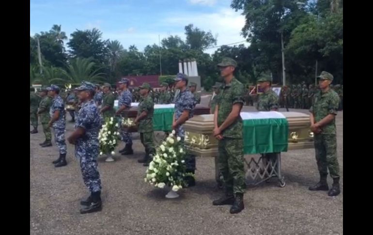 CULIACÁN, SINALOA (01/OCT/2016).- El secretario de la Defensa Nacional, Salvador Cienfuegos Zepeda, encabezó el homenaje póstumo para los cinco elementos del Ejército que fueron asesinados en una emboscada en Culiacán.“Fueron emboscados por bestias criminales”, afirmó el general Cienfuegos.Los restos de los militares se encuentran en el Patio de Maniobras del 94 Batallón de Infantería, en Culiacán, Sinaloa.