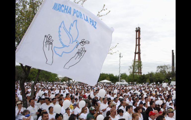 México | Recorren calles de Monterrey para pedir un alto a la inseguridad Realizan marcha contra violencia en NL Los inconformes gritaban consignas como: Quiero salir a la calle sin miedo Por: SUN 17 de octubre de 2010 - 21:17 hs En marzo pasado, personas marcharon también para pedir por la paz en Nuevo León. EFE / MONTERREY, NUEVO LEÓN (17/OCT/2010).- Alrededor de 300 personas, entre ciudadanos, amigos y familiares de la estudiante Lucía Quintanilla, iniciaron una marcha por las principales calles del centro de la ciudad para manifestarse contra la violencia. La manifestación comenzó alrededor de las 17:30 horas en el cruce de las avenidas Morelos y Benito Juárez, lugar donde el pasado 6 de octubre fue asesinada por bala de un sicario la joven universitaria. Los inconformes marcharon vestidos de blanco, portando globos y gritando consignas como: "Quiero salir a la calle sin miedo" y "Basta de inseguridad, queremos la paz". La marcha preveía recorrer las principales calles del centro para llegar al Palacio de Gobierno en la Macroplaza, para realizar un mitin. Temas Crimen Organizado Estados Nuevo León Recibe las últimas noticias en tu e-mail Todo lo que necesitas saber para comenzar tu día Registrarse implica aceptar los Términos y Condiciones