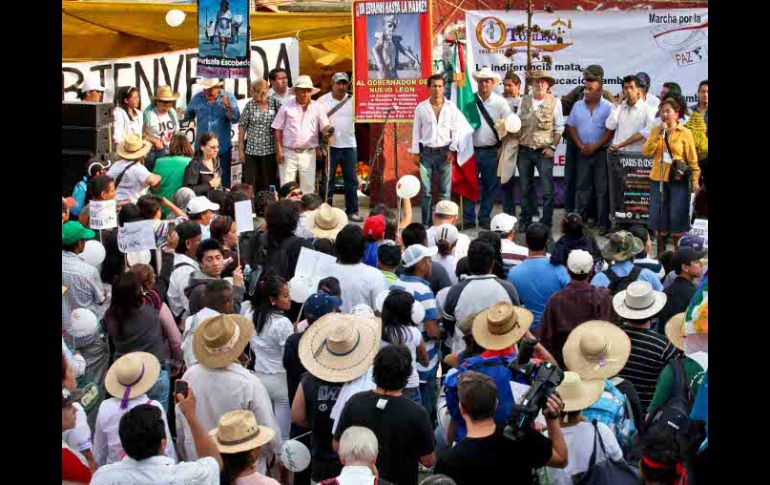 México | Los convocantes esperan que más personas se unan en el trayecto hacia el Zócalo del DF Reciben en Topilejo Marcha por la Paz La caminata continuará este sábado a lo largo de una de las principales avenidas de la capital y para el domingo culminar en una gran concentración contra la violencia en el Zócalo Por: EL INFORMADOR 6 de mayo de 2011 - 20:08 hs Con tambora, pétalos de flor y ofrendas, el pueblo de Topilejo dio la bienvenida a la marcha. EL UNIVERSAL / - Marcha por la Paz llega al DF- Beltrones llama a Calderón a dialogar con manifestantes - Retoma la ruta al DF la Marcha por la Paz CIUDAD DE MÉXICO (06/MAY/2011).- Con tamboras, pétalos de flor y ofrendas, el pueblo de Topilejo dio la bienvenida a los integrantes de la “Marcha Nacional por la Paz”, quienes han caminado por la autopista México-Cuernavaca en sentido al Distrito Federal, y llegaron a la entrada de la comunidad. Desde las ventanas de las casas, puentes peatonales y los autos que pasaron en contrasentido, la gente sacó pañuelos blancos, aplaudió y gritó porras a los manifestantes. Una tambora rompió el silencio con el que la marcha había andado. De nueva cuenta, Julián Lebarón, Javier Sicilia y un grupo de habitantes de este poblado encabezaron el contingente. Al concluir esta segunda jornada de protesta, Sicilia, considerado por muchos como un símbolo de las víctimas de la violencia ligada al narcotráfico, acusó en un mitin a los partidos políticos de ser corresponsables de la violencia que azota a México. "Estamos hasta la madre (hartos) del crimen, queremos que esto termine, pero también estamos hasta la madre de las instituciones, empezando por los partidos políticos. Han sido omisos, están corrompidos y se han blindado y hecho leyes para protegerse sus impunidades", dijo Sicilia. La llamada "Marcha por la Paz con Justicia y Dignidad" recorre los 90 km que separan la turística Cuernavaca, Morelos, de la capital para reclamar a los cárteles que cesen sus cruentas pugnas y al gobierno que deje de utilizar al Ejército para combatirlos. En la plaza central de Topilejo, Sicilia encabezó acto antes dirigirse, junto con los manifestantes, a un terreno donde pasarán la noche y donde han colocado enormes lonas para protegerlos de la intemperie. Los convocantes esperan que más personas se unan en el trayecto, que continuará este sábado a lo largo de una de las principales avenidas de la capital y para el domingo culminar en una gran concentración contra la violencia en el Zócalo y que se replicará en otras localidades del país. El sábado, la marcha se instalará en el campus de la Universidad Nacional Autónoma de México, donde pernoctará para partir muy temprano la mañana del domingo. Otros grupos de manifestantes viajan de distintas partes del país para sumarse a la concentración, entre ellos un centenar de inmigrantes centroamericanos y activistas, quienes denunciaron que recibieron amenazas de hombres armados a su llegada a Orizaba. "Tres hombres en una camioneta amagaron con un arma a una pareja de migrantes e intentaron secuestrar a la mujer pero finalmente pudieron huir", explicó el activista mexicano Rubén Figueroa. Con información de AFP y El Universal Temas Estados Distrito Federal Manifestaciones en México Lee También Angelina Jolie planea dejar EU por diferencias con gobierno de Trump Trump dijo merecer Nobel de la Paz por haber "terminado con siete guerras" ¿Trump ganaría el Nobel de la Paz? Veteranos del Comité de premiación responden El SAT va contra factureras; pondrá "piso parejo" en pago de impuestos Recibe las últimas noticias en tu e-mail Todo lo que necesitas saber para comenzar tu día Registrarse implica aceptar los Términos y Condiciones