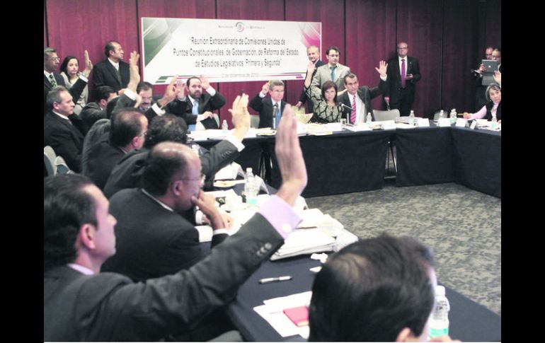 México | El Senado prevé aprobar la reforma política y enviarla a San Lázaro Reelección e INE pasan en comisiones El dictamen remplaza la PGR por la Fiscalía General de la Federación Por: EL INFORMADOR 3 de diciembre de 2013 - 03:51 hs Las Comisiones del Senado avalaron el dictamen con 22 votos a favor y dos en contra. Los perredistas se abstuvieron. NTX / CIUDAD DE MÉXICO (03/DIC/2013).- La reforma política dio un paso más para ser realidad. Las comisiones de Puntos Constitucionales, Gobernación, Reforma del Estado y Estudios Legislativos Primera y Segunda, aprobaron con 22 votos a favor y dos en contra en lo general la iniciativa y hoy será votada en el Pleno de la Cámara alta. Los perredistas, quienes se abstuvieron de votar, irrumpieron en la sesión sólo para reiterar su negativa al dictamen terminado durante la madrugada de ayer por panistas y priistas. No obstante, anunciaron que darán el debate en el Pleno del Senado donde defenderán sus posicionamientos. La reforma contempla la reelección de legisladores y presidentes municipales y la creación de un Instituto Nacional Electoral (INE), que sustituirá al IFE en caso de tener luz verde en ambas cámaras. La Procuraduría General de la República (PGR) cambiaría de nombre por el de Fiscalía General de la Federación. La dependencia daría mayor autonomía al Ministerio Público Federal. Los confrontan En la sesión, que duró apenas dos hora y media, destacó la participación de activistas que reprocharon a los senadores presentes la falta de ciudadanización de la Reforma. El grupo de jóvenes de la organización “Reforma Ya” exhortó a los senadores a dejar de simular. Enrique Burgos García, presidente de la Comisión de puntos Constitucionales, le pidió a uno de los inconformes retirarse para terminar el dictamen y el incidente no pasó a mayores. Además de los perredistas, también se abstuvieron de votar la senadora de Nueva Alianza e hija de Elba Esther Gordillo, Mónica Arreola, así como el panista Javier Corral, quien informó a la audiencia que su voto en abstención se debía a que no conocía la totalidad de las modificaciones por haberse realizado durante la madrugada. Incluso el propio Corral reservó 34 artículos. CLAVESEl núcleo del dictamen 1 De aprobarse como está el dictamen, la Fiscalía General de la Federación entraría en vigor y sustituirá a la PGR en cuanto se apruebe la ley secundaria, y no hasta 2018. Su titular tendrá que ser avalado por dos terceras partes del Senado. 2 Los senadores podrán ser electos hasta por dos periodos consecutivos y los diputados federales hasta cuatro consecutivos para llegar a 12. 3 Las reelecciones entrarían en vigor a partir de 2018, y serían los partidos quienes determinen qué legisladores postularán para un nuevo periodo. 4 El INE sustituiría al IFE y estaría integrado por 11 miembros. Organizará los comicios federales. Los miembros del Consejo elegirían a los titulares de los institutos estatales. Además podrían organizar las elecciones internas de los partidos. 5 El secretario de Hacienda que designe el Ejecutivo en el futuro debe ser ratificado por la Cámara de Diputados, mientras que el canciller será sujeto al aval del mismo Senado. LO QUE VIENE El Pleno del Senado discutirá y votará la iniciativa de reforma política. La propuesta cuenta con el apoyo de panistas y priistas. La reforma llegará a las comisiones en la Cámara de Diputados para su votación y posibles cambios. Partidos afirman que no habrá problema para avalarla. El Pleno de la Cámara baja votaría la reforma y con ello pasaría al Ejecutivo federal. Temas PGR IFE Reforma Política Lee También Hamás entrega cuatro cuerpos más de rehenes en Gaza "Trump puede ser presidente de la Paz o de la Guerra, pero no ambos": ministro iraní El audio de la soberbia Un lugar intermedio… Recibe las últimas noticias en tu e-mail Todo lo que necesitas saber para comenzar tu día Registrarse implica aceptar los Términos y Condiciones