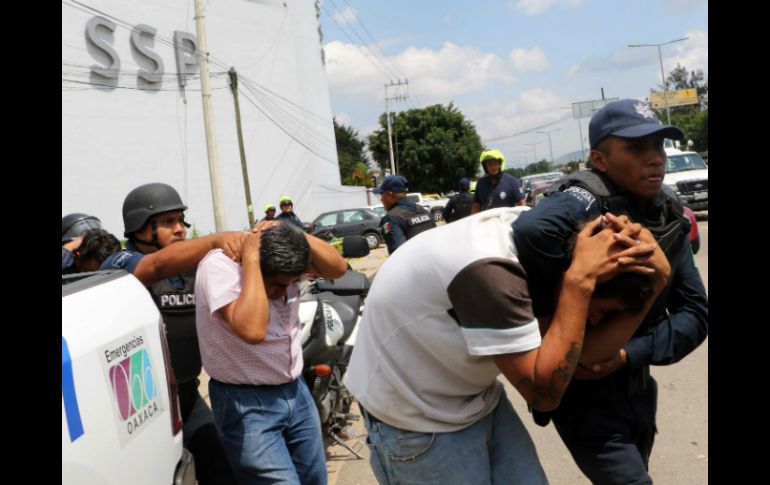 México | Más de 100 personas fueron detenidas en los operativos de las fuerzas federales Registran más de cien detenidos en Oaxaca y Guerrero Más de 100 personas fueron detenidas en los operativos de las fuerzas federales y armadas Por: SUN 7 de junio de 2015 - 20:28 hs Autoridades federales explicaron que los aseguramientos se llevaron a cabo por la quema de casillas y de papelería electoral. AP / L. Hernández CIUDAD DE MÉXICO (07/JUN/2015).- Más de 100 personas fueron detenidas durante los operativos realizados por las fuerzas federales y armadas en la jornada electoral que se realizó este domingo en los estados de Oaxaca y Guerrero. Autoridades federales explicaron que los aseguramientos de llevaron a cabo por la quema de casillas, de papelería electoral y por el robo de urnas en algunos municipios de estas dos entidades, donde la federación implementó un operativo para garantizar la jornada electoral. Las fuentes consultadas explicaron que en el estado de Oaxaca, la detención de personas se llevó a cabo en los municipios de Salina Cruz y Tuxtepec. También reportan más de 50 capturas en la capital del estado por los disturbios realizados por organismos sociales e integrantes de la Coordinadora Nacional de Trabajadores de la Educación ( CNTE). Las fuerzas federales informaron que durante la mañana de este domingo hubo diferentes incidentes en el Municipio de Tehuantepec, pero no fue necesaria la intervención de los elementos, por lo que no se reportan enfrentamientos. En Guerrero los reportes que hasta el momento ha generado la institución indican altercados en el municipio de Tixtla y en Tlapa. En este último municipio, la dependencia corrobora la detención de algunos policías, quienes fueron asegurados por los pobladores de la zona luego de la captura de algunos de sus compañeros. Mientras que en Michoacán y en Chiapas solo se presentaron, según las fuentes consultadas, la quema de algunas casillas, sin que esto afectara la jornada electoral. Temas Política Oaxaca Guerrero CNTE Elecciones intermedias México 2015 Lee También Tras pacto con Coca Cola, México acuerda bajar impuestos a refrescos En un año ha disminuido la venta de refrescos en México: Inegi Condenarán delito de extorsión con hasta quince años de cárcel ¿Cuál es el mejor pan de muerto en CDMX y dónde comprarlo? Recibe las últimas noticias en tu e-mail Todo lo que necesitas saber para comenzar tu día Registrarse implica aceptar los Términos y Condiciones