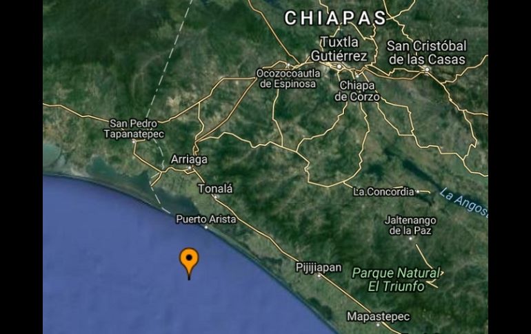 CIUDAD DE MÉXICO (15/NOV/2016).- El Servicio Sismológico Nacional (SSN) informó que a las 11:27 horas de este martes ocurrió un sismo con magnitud preliminar de cinco grados a siete kilómetros al oeste de Tonalá, Chiapas.Más tarde se informó que el fenómeno reportó una mangitud de 4.7 grados.El movimiento telúrico se registró en las coordenadas 16.07 grados latitud norte, -93.82 grados longitud oeste y a 10 kilómetros de profundidad.