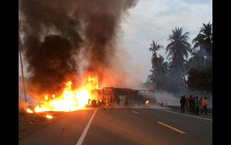 MORELIA, MICHOACÁN (13/ABR/2017).- Este jueves, al menos 14 personas murieron calcinadas y 20 más resultaron heridas al chocar un autobús de pasajeros y un camión cargado con combustible en una autopista en los límites de los estados mexicanos de Michoacán y Guerrero.El accidente ocurrió alrededor de las 06:30 horas locales en la autopista Siglo XXI cerca de la caseta de peaje del poblado de Feliciano, en el sureño estado de Guerrero, dijeron fuentes de la Asociación de Bomberos del Estado de Michoacán (ABEM).De acuerdo con las primeras investigaciones, ambos vehículos chocaron de frente y posteriormente se incendiaron, provocando la muerte de al menos 14 personas, entre ellas los dos conductores.