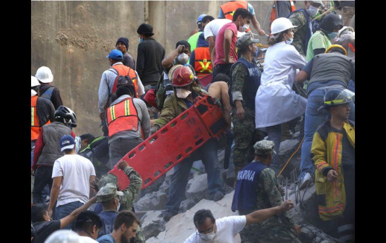 CIUDAD DE MÉXICO (20/SEP/2017).- Entre los escombros del edificio que se colapsó en la calle Laredo en la colonia Condesa debido al sismo, comienzan a rescatar a las primeras personas.Aunque las autoridades no han dado la cifra oficial de las personas liberadas, hasta el momento se han presentado tres ovaciones por parte de los voluntarios ante la emoción por sacar con vida a estas personas.Elementos de seguridad de la Sedena, bomberos, de la Marina y rescatistas continúan trabajando para salvar la vida de aquellos que quedaron atrapados.De igual forma, paramédicos de la Cruz Roja se encuentran atendiendo a las víctimas y los voluntarios no dejan de llegar con picos, palas y cubetas.Tampoco se reportan incidentes adicionales como fugas de gas.