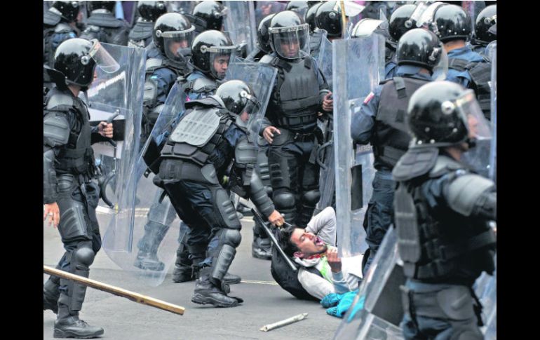 México | De los 31 detenidos de la jornada, ninguno era miembro de la CNTE Se agotó el diálogo: Policía Federal ''limpia'' el Zócalo De los 31 detenidos de la jornada, ninguno era miembro de la CNTE. El secretario de Gobernación afirmó que eran infiltrados que buscaban una confrontación. Por: EL INFORMADOR 14 de septiembre de 2013 - 04:25 hs CIUDAD DE MÉXICO (14/SEP/2013).- El desalojo del Zócalo se consumó. La falta de acuerdo para liberar la Plaza de la Constitución provocó que policías federales se movilizaran con el objetivo de retirar a los maestros de la Coordinadora Nacional de Trabajadores de la Educación (CNTE), para que este domingo el Presidente Enrique Peña Nieto pueda encabezar la ceremonia del tradicional Grito de Independencia. “Una vez agotado el diálogo, yo tengo la responsabilidad de limpiar esta situación” afirmó el comisionado Nacional de Seguridad, Manuel Mondragón y Kalb. Los elementos de la Policía Federal llegaron al Zócalo alrededor de las 16:00 horas por la calle Moneda, a un costado de Palacio Nacional. Los maestros habían levantado una barricada y esperaban a los agentes con palos y piedras, pero su resistencia apenas duró unos minutos, ya que al verse superados huyeron del lugar. Minutos después comenzaron los primeros enfrentamientos, principalmente entre agentes federales y personas encapuchadas. El saldo hasta anoche era de 31 personas detenidas y 11 heridos. La Policía Federal informó que ninguno de los capturados era maestro, sino que todos son anarquistas. El propio secretario de Gobernación, Miguel Ángel Osorio Chong, dijo a noche en un mensaje al país que personas armadas se fueron infiltrando en el magisterio con el fin de comenzar una confrontación. Detalló que a los maestros se les hizo saber que las leyes secundarias promulgadas por el Presidente Peña Nieto no se revocarían. También afirmó que el mayor festejo de los mexicanos era el Grito de Independencia y el desfile militar, por lo cual era imprescindible desalojar el Zócalo capitalino. “Se les ofreció una reubicación pero no encontramos voluntad de su parte”. Tras el incidente, los docentes se replegaron al Monumento a la Revolución, donde pernoctaron. Temas Gobierno de México CNTE Manifestaciones en la Cd. de México Recibe las últimas noticias en tu e-mail Todo lo que necesitas saber para comenzar tu día Registrarse implica aceptar los Términos y Condiciones