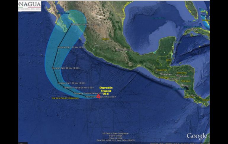 México | El SMN prevé que este fenómeno genere lluvias intensas en Oaxaca, Chiapas y Guerrero Se forma nueva depresión tropical en el Pacífico El SMN prevé que este fenómeno genere lluvias intensas en Oaxaca, Chiapas y Guerrero Por: SUN 23 de noviembre de 2015 - 16:04 hs El ciclón se ubica a 750 km al sur-suroeste de Acapulco, Guerrero, y a 795 km al sur de Lázaro Cárdenas, Michoacán. TWITTER / @conagua_clima CIUDAD DE MÉXICO (23/NOV/2015).- La depresión tropical 22-E se formó este lunes en el Océano Pacífico, la cual generará lluvias intensas y fuertes vientos en Oaxaca, Chiapas y Guerrero, informó el Servicio Meteorológico Nacional (SMN). En su último reporte, el Meteorológico explicó que a las 15:00 horas de este lunes se formó el ciclón, el cual se ubica a 750 kilómetros al sur-suroeste de Acapulco, Guerrero, y a 795 km al sur de Lázaro Cárdenas, Michoacán. La depresión tropical tiene vientos máximos sostenidos de 55 kilómetros por hora (km/h), con rachas de hasta 65 km/h y se desplaza hacia el oeste a 30 km/h. Se localizó aproximadamente a 750 kilómetros (km) al sur-suroeste de Acapulco, Guerrero, y a 795 km al sur de Lázaro Cárdenas, Michoacán, con vientos máximos sostenidos de 55 kilómetros por hora (km/h), rachas de hasta 65 km/h y se desplaza hacia el oeste a 30 km/h, informa el Servicio Meteorológico Nacional (SMN), dependiente de la Comisión Nacional del Agua ( Conagua). El sistema genera ingreso de humedad al sur y sureste del país, lo que refuerza el potencial de precipitaciones intensas, de 75 a 150 milímetros en Oaxaca y Chiapas, así como fuertes de 25 a 50 mm en Guerrero, comentó el SMN. La dependencia también recomendó a la población estar atenta a los comunicados que emiten las autoridades estatales y municipales y extremar precauciones ante posibles deslaves, flujos de lodo, desbordamiento de ríos e inundaciones en zonas bajas y de escaso drenaje. Temas Estados Clima SMN Lluvias en el país Recibe las últimas noticias en tu e-mail Todo lo que necesitas saber para comenzar tu día Registrarse implica aceptar los Términos y Condiciones