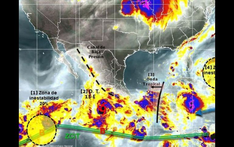 México | El fenómeno se ubica a 385 kilómetros al suroeste de Acapulco, Guerrero Se forma nueva depresión tropical en el Pacífico mexicano El fenómeno se ubica a 385 kilómetros al suroeste de Acapulco, Guerrero Por: NTX 10 de septiembre de 2014 - 03:47 hs El SMN exhorta a la población y a la navegación marítima a mantener precauciones. TWITTER @conagua_clima / CIUDAD DE MÉXICO (10/SEP/2014).- El Servicio Meteorológico Nacional (SMN) informó que la depresión tropical número 15-E comenzó la madrugada de este miércoles a formarse al suroeste de Acapulco, Guerrero. Indicó que a las 04:00 horas, tiempo del centro de México, este fenómeno se ubicaba a unos 390 kilómetros al sur de Lázaro Cárdenas, Michoacán, y a 385 kilómetros al suroeste de Acapulco, Guerrero. El sistema, explicó, mantiene un desplazamiento hacia el nor-noroeste a dos kilómetros por hora con vientos sostenidos de 55 kilómetros por hora y rachas de hasta 75. De manera que estableció una zona de vigilancia por potencial lluvia intensa en los estados de Oaxaca, Guerrero, Michoacán y Colima, además de precipitaciones fuertes en Jalisco. El organismo dependiente de la Comisión Nacional del Agua (Conagua) pronosticó que el sistema se intensificará en las próximas horas y podría convertirse en tormenta tropical al sur de Zihuatanejo, Guerrero. Ante ello, el Meteorológico exhortó a la población en general de los estados mencionados y a la navegación marítima en las inmediaciones del sistema, mantener precauciones y atender las recomendaciones emitidas por las autoridades del Sistema Nacional de Protección Civil. Temas Estados Clima SMN Recibe las últimas noticias en tu e-mail Todo lo que necesitas saber para comenzar tu día Registrarse implica aceptar los Términos y Condiciones
