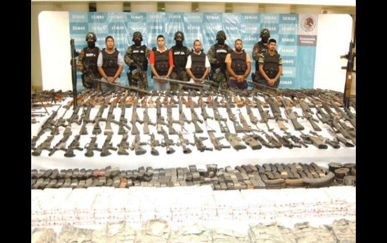 México | Se aseguraron 204 armas, 200 kilos de cocaína y 500 uniformes apócrifos Semar presenta arsenal decomisado a grupo delictivo En los operativos realizados por la Secretaria de Marina en Nuevo León y Coahuila, se logró la detención de cinco sujetos en posesión de armamento Por: SUN 9 de junio de 2011 - 09:34 hs Los detenidos son: Javier Sarabia, Juan Bautista, Juan Aldana Vázquez, Benjamín Hidalgo y Omar Guadalupe Santos. NOTIMEX / CIUDAD DE MÉXICO (09/JUN/2011).- La Secretaría de Marina (Semar) presentó un arsenal de 204 armas, 200 kilos de cocaína y 500 uniformes apócrifos decomisados al Cartel de los "Zetas" en operativos realizados en Nuevo León y Coahuila, así como a cinco presuntos miembros de esa organización delictiva. Durante la presentación realizada en el Centro de Estudios Superiores Navales, el contraalmirante José Luis Vergara, vocero de la Semar no respondió preguntas por estar las investigaciones en curso e informó que el operativo donde se decomisó el arsenal se efectuó el miércoles en el municipio Villa Unión en Coahuila. Tras establecer un puesto de control con personal de infantería de marina en una brecha ubicada a ocho kilómetros del poblado Villa Unión, del municipio del mismo nombre, se detuvo a un vehículo y se aseguró a cinco presuntos delincuentes, con armamento, cuyos nombres son Javier Eduardo Sarabia, de 25 años; Juan Bautista Mata, de 33 años; Juan Alberto Aldana Vázquez de 18 años; Benjamín Hidalgo Velázquez de 19 años y Omar Guadalupe Santos de 26 años de edad. Posteriormente el personal naval se dirigió a una construcción abandonada donde se encontraron en diferentes bolsas 563 uniformes apócrifos de camuflaje de desierto y selva con insignias modificadas de la Secretaría de Marina, además de botas y artículos diversos, agregó el vocero. En el lugar, agregó, se encontró una camioneta de "carga con capacidad para cuatro toneladas misma que se encontraba cubierta, semioculta entre algunos árboles, por lo que se revisó localizando en su interior un arsenal que presumiblemente era utilizado para el adiestramiento del personal delictivo de la organización delictiva los ''Zetas'' en esa área". En el lugar se decomisaron "204 armas largas, once armas cortas, 29 mil 621 cartuchos útiles de diferentes calibres, 778 cargadores para armas de diferentes calibres, 15 granadas de mano y dos granadas de calibre 40", precisó Vergara. Por otra parte, Vergara señaló que se aseguraron más de 200 kilos de cocaína ubicados en dos unidades de carga el primer evento se realizó cuando personal de marina encontró una unidad abandonada en una pensión de trailers que están en la carretera Colombia-Monterrey. El personal de infantería de Marina, mencionó el vocero, realizó una revisión con un binomio canofilo que encontró en espacios ocultos 88 paquetes conteniendo 99 kilos de cocaína y en el mismo lugar se encontró otra unidad de carga y se encontró en un compartimiento oculto 100 paquetes con un pesos de 108 kilos de cocaína. El lunes 6 de junio, efectivos de la Marina confiscaron un arsenal en el estado de Coahuila presuntamente propiedad del cártel de los ''Zetas''. La Secretaría de Marina informó que el arsenal estaba compuesto por 80 armas largas, 20 cortas, tres tubos lanzagranadas, 50 mil 150 cartuchos, 880 cargadores, tres kilos de explosivo "EMULGEL", cuatro granadas de fragmentación y dos de 40 milímetros, además de una tonelada de fuegos pirotécnicos. El 1 de junio el Ejército localizó un arsenal donde había ametralladoras de importación rusa, china, checoslovaca y estadounidense que estaba enterrado en el ejido Sardinas, municipio de Nadadores. El armamento estaba a metro y medio de profundidad y se localizó durante trabajos de exploración de los castrenses, informaron el comandante de la sexta zona militar, general Dagoberto Espinoza Rodríguez, y el comandante de la cuarta región militar de Monterrey, general de División Diplomado de Estado Mayor, Noé Sandoval Alcázar. Temas Crimen Organizado Semar Detenidos en México Lee También Metro CDMX: Fecha en que abrirán todas las estaciones de la Línea 1 Esta es la verdadera identidad del "Juan Gabriel" captado en París t.A.T.u anuncia concierto en México: precio de boletos y cuándo salen a la venta ¿Será obligatorio presentar la CURP biométrica para trámites escolares? Recibe las últimas noticias en tu e-mail Todo lo que necesitas saber para comenzar tu día Registrarse implica aceptar los Términos y Condiciones