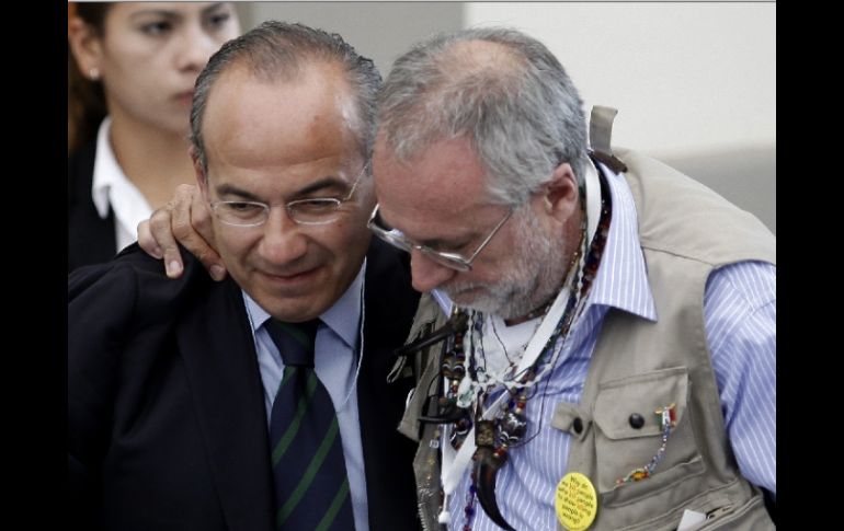 México | El mandatario gira instrucciones a su gabinete para agendar la nueva cita Sicilia y Calderón acuerdan dialogar de nuevo en tres meses El mandatario gira instrucciones a su gabinete para agendar la nueva cita Por: EL INFORMADOR 23 de junio de 2011 - 12:22 hs - Sicilia lleva su llamado por la paz frente a Calderón- Diálogo encabezado por Sicilia y Calderónalcanza tres 'temas del momento' - El Movimiento por la Paz anuncia nuevacaravana por el sureste MÉXICO (23/JUN/2011).- Durante la recta final del encuentro entre el Movimiento por la Paz, encabezado por Javier Sicilia, y el Presidente Felipe Calderón, se acordó agendar un nuevo diálogo en un periodo de tres meses. El Ejecutivo federal giró instrucciones a su gabinete a invitacion de Sicilia para la integración de una comisión de seguimiento y un nuevo análisis de la estrategia de seguridad nacional. "Le solicito que se abra un fideicomiso para que se hagan las placas y un monumento en memorias de las víctimas", pidió el activista y poeta en su última intervención. En respuesta, Calderón planteó que de inmediato se cree la comisión para organizar la siguiente reunión y explicó que a través de la Procuraduría General de la República, y de un fondo para la atención de víctimas se realizará el memorial propuesto por el activista. Entre los acuerdos finales de la reunión, se mencionó la intención de dialogar con otros niveles de gobierno en las próximas oportunidades. Durante el diálogo que tuvo lugar en el Castillo de Chapultepec, el poeta Javier Sicilia reclamó al Presidente haber lanzado una guerra contra el narcotráfico con "instituciones podridas" y le demandó una disculpa al país por las miles de víctimas. En tanto, el Presidente Felipe Calderón admitió que las autoridades deben disculparse por no haber actuado a tiempo para defender a las víctimas del crimen organizado, pero no por desplegar a fuerzas federales porque eso ha permitido combatir a grupos de la delincuencia que han puesto en jaque a diversas comunidades. Temas Gobierno de México Felipe Calderón Javier Sicilia Lee También "Calita" regresa a Guadalajara tras su triunfo en la Nuevo Progreso Tras pacto con Coca Cola, México acuerda bajar impuestos a refrescos En un año ha disminuido la venta de refrescos en México: Inegi Condenarán delito de extorsión con hasta quince años de cárcel Recibe las últimas noticias en tu e-mail Todo lo que necesitas saber para comenzar tu día Registrarse implica aceptar los Términos y Condiciones