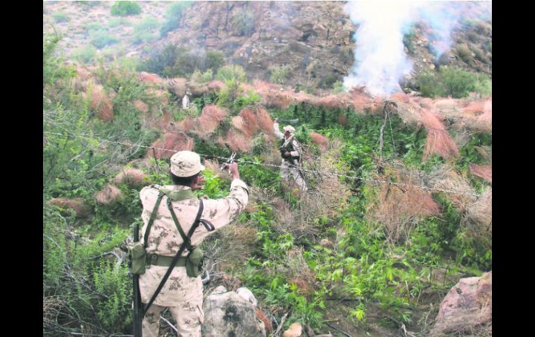 México | Narcotráfico. Plantíos de enervantes ''Siembra hormiga'', la nueva modalidad Quienes cultivan mariguana y amapola ahora los hacen en pequeña escala, para evitar que los militares fumiguen sus grandes sembradíos Por: SUN 8 de octubre de 2012 - 03:06 hs Militares queman mariguana en Baja California. Los agricultores ahora siembran pequeñas porciones para no levantar sospecha.ELUNIVERSAL / TIJUANA, BAJA CALIFORNIA (08/OCT/2012).- En lo alto de la Sierra Baja Californiana se escondían. Los sembradores instalaron su pequeño campamento cerca de la ranchería “El Topo” cobijados por grandes árboles. La cosecha es delicada, las plantas ya miden dos metros de alto. En Baja California el cultivo de mariguana y amapola se duplicó este año. De enero a la fecha, la Secretaría de la Defensa Nacional ha asegurado 301 plantíos de mariguana, en todo el año pasado apenas detectaron 178. Los narcotraficantes encontraron una nueva modalidad y las técnicas de siembra han cambiado. Con la intención de pasar desapercibidos por las fuerzas castrenses y policiales en esta Entidad federativa, se convirtieron en “sembradores hormiga”. Hasta 2011, la Segunda Región Militar había localizado grandes “megaplantíos” distribuidos a lo largo y ancho de cientos de hectáreas; como aquel, localizado en el Sur de Ensenada, en el poblado de San Quintín, propiedad del narcotraficante Joaquín “El Chapo” Guzmán. En la plantación que se encuentra ubicada a dos kilómetros y medio de la carretera No. 1 transpeninsular, en el tramo carretero Rosarito-Guerrero Negro, trabajaban más de 100 jornaleros; muchos ellos, recuerda ahora la Secretaría de Seguridad Pública de Baja California, probablemente reclutados en la pizca al sur de Ensenada. Pero luego del reforzamiento del combate al narcotráfico, la intervención de las autoridades militares en las labores civiles y la pugna entre los cárteles Arellano Félix y el de Sinaloa, sembrar grandes cantidades se volvió prácticamente imposible. El general Gilberto Landeros , comandante de la Segunda Zona Militar, dice que “ahora siembran en una línea pequeña pegada a las carreteras, a las brechas para disimular desde el aire”. EL DATOSe duplica cosecha de amapola Aunque la siembra de amapola es poco frecuente en Baja California, en la zona montañosa de la Sierra de Juárez fueron localizados 10 plantíos de este enervante, lo que también representa un incremento de casi el 50%, puesto que el año pasado apenas se aseguraron seis. Temas Crimen Organizado Drogas Baja California Lee También Por segundo día, incendian vehículos en Teocaltiche Decomisan coches con reporte de robo y armas en Teocaltiche ¿Cómo se despliegan los cárteles mexicanos en Australia? Consulado de EU en Tijuana emite alerta a sus ciudadanos Recibe las últimas noticias en tu e-mail Todo lo que necesitas saber para comenzar tu día Registrarse implica aceptar los Términos y Condiciones