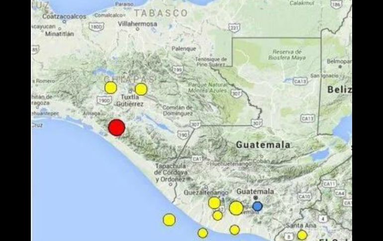 México | Tiene una magnitud preliminar de 6.4 grados Richter Sismológico registra temblor en Chiapas Tiene una magnitud preliminar de 6.4 grados Richter Por: NTX 17 de diciembre de 2015 - 13:10 hs Imagen difundida por autoridades de Chiapas que muestra el epicentro del sismo. TWITTER / @pcivilchiapas TUXTLA GUTIÉRREZ, CHIAPAS (17/DIC/2015).- El Servicio Sismológico Nacional ( SSN) informó que a las 13:49 horas de este jueves ocurrió un sismo de 6.4 grados en la escala de Richter, a 37 kilómetros al sur de Tonalá, Chiapas. El organismo del Instituto de Geofísica de la Universidad Nacional Autónoma de México ( UNAM) detalló que el movimiento telúrico se registró en las coordenadas 15.76 grados latitud norte, -93.70 longitud oeste y a 90 kilómetros de profundidad. A su vez, la Secretaría de Protección Civil de la entidad recomendó a la población estar atenta ante posibles réplicas, mantener la calma y desalojar inmuebles que sean valorados como vulnerables. "Realice una evacuación preventiva del inmueble para que sea valorado ante posibles daños estructurales", indicó en su cuenta de Twitter @pcivilchiapas. Temas Sismos nacional Temblor Chiapas Sismos Estados Terremoto Lee También Apoyo Bienestar de 600 mil pesos: requisitos y qué módulo te corresponde para registro CONAVI Asesinan a maestra en Oaxaca presuntamente por una calificación Llega "Melissa" al Atlántico; esta es la trayectoria de la tormenta A punto de aparecer el ciclón "Melissa"; a esta distancia está de México Recibe las últimas noticias en tu e-mail Todo lo que necesitas saber para comenzar tu día Registrarse implica aceptar los Términos y Condiciones
