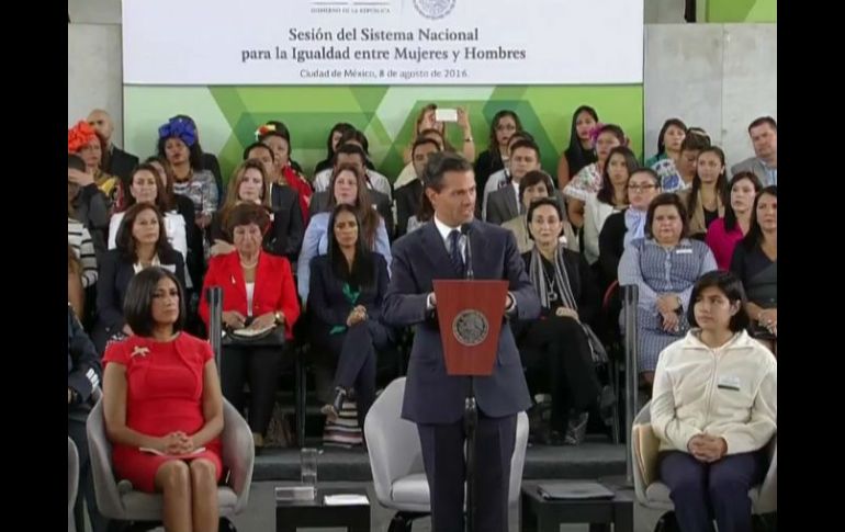CIUDAD DE MÉXICO (08/AGO/2016).- El Presidente Enrique Peña Nieto afirmó que para lograr el deseo de tener una mejor nación, democrática, con más libertades y oportunidades tanto de crecimiento como de realización personal para cada habitante, "sin duda es determinante la participación y el involucramiento de las mujeres". "Con ustedes de aliadas y protagonistas, México será una país más libre, de mayor desarrollo y de mayor prosperidad", aseveró el Mandatario durante la sesión pública del Sistema Nacional para la Igualdad entre Mujeres y Hombres. En ese marco ordenó que este mes las dependencias federales tengan sus certificaciones de la Norma Mexicana para la Igualdad Laboral y No Discriminación, además de que incluyan en sus reglas de operación y programas la perspectiva de género conforme a los lineamientos de igualdad difundidos recientemente por Inmujeres.