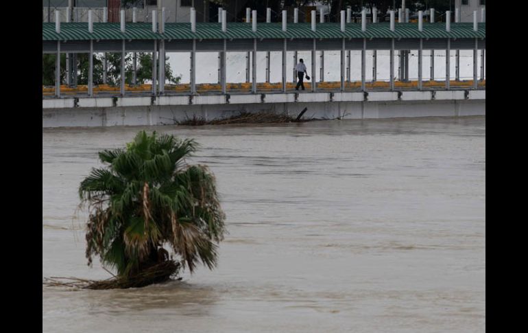 México | Queda a 30 centímetros de alcanzar la cinta de rodamiento del Puente Internacional I Sube cresta de río Bravo hasta 13 metros Normalmente tiene un nivel del agua de 70 centímetros en Nuevo Laredo Por: NTX 9 de julio de 2010 - 16:27 hs El nivel del agua quedó a centímetros de inundar el puente internacional entre Nuevo Laredo, Tamaulipas, y Laredo, Texas. AP / NUEVO LAREDO, TAMAULIPAS (09/JUL/2010).- Hasta 13 metros alcanzó la madrugada de este viernes la cresta máxima de la creciente del río Bravo, faltando escasos 30 centímetros para que el nivel del agua llegara a la cinta de rodamiento del Puente Internacional I. La Comisión Internacional de Límites y Aguas (CILA) calificó a este fenómeno natural como una histórica creciente, que en las últimas horas bajo su nivel de 12.40 metros. El titular de la CILA, David Negrete Arroyos, comentó que normalmente el río tiene un nivel del agua de 70 centímetros, sin embargo, subió a 13 metros de altura, situación que no se había registrado desde 1968, cuando se construyó la presa La Amistad. Ante este fenómeno natural provocado por la descargas de agua río arriba ocasionadas por las lluvias en Piedras Negras y un trasvase de la presa La Amistad de más de mil metros cúbicos por segundos, el Puente Internacional I cerró la circulación de vehículos y peatones. Mientras que el Puente Internacional II, desde la tarde de este jueves solamente y para evitar un incidente, abrió su circulación permanentemente, dejando pasar en promedio 50 vehículos cada 10 minutos, para evitar congestionamientos de unidades en su estructura. "Esta creciente sin duda superó a la registrada en 1998, cuando tuvimos un nivel de 10.29 metros, también desde 1971 ha sido la mayor descarga de agua registrada, ya que en ese año tuvimos tres mil 900 metros cúbicos por segundo y hoy presentamos siete mil 500 metros cúbicos por segundo de escurrimientos", dijo Negrete Arroyos. Áreas como el Centro de Importación e Internación Temporal de Vehículos (Citev) ubicado a un lado de los puentes internacionales, se inundó, al igual que el bulevar Luis Donaldo Colosio a la altura de la Paseo Colón, el parque Viveros y la colonia Victoria. La creciente también provocó que por la noche de este jueves, vecinos de la colonia Benito Juárez, ISSSTE y El Remolino sacaran a la calle sus pertenencias al llegar el agua hasta sus viviendas. El gobierno federal, en apoyo a la ciudad, envió desde el miércoles a más de 200 elementos de la Unidad de Rescate y Auxilio Social de la Policía Federal para realizar labores de rescate y vigilancia en zonas de inundación. Temas Estados Tamaulipas Lluvias en el país Lee También Trump anuncia aranceles del 100% para China por su postura comercial 'hostil' CFE trabaja en restablecer energía a más de 300 mil usuarios tras intensas lluvias ADO suspende servicio en estas ciudades por paso de la tormenta tropical 'Raymond' ¿LLUVIA en GDL por la noche?, pronóstico del clima para hoy, 10 de octubre Recibe las últimas noticias en tu e-mail Todo lo que necesitas saber para comenzar tu día Registrarse implica aceptar los Términos y Condiciones