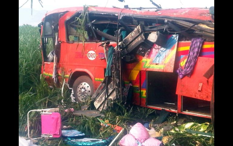 México | Mueren tres personas que eran atendidas en hospitales tras el percance Suman 24 muertos por accidente de autobús en Nayarit La madrugada de hoy viernes un autobús que llevaba a familias de Chihuahua a la playa de Guayabitos se desbarrancó cerca del poblado de Chapalilla Por: SUN 20 de julio de 2012 - 12:20 hs La madrugada de hoy viernes un autobús que llevaba a familias de Chihuahua a la playa de Guayabitos se desbarrancó. EL UNIVERSAL / TEPIC, NAYARIT (20/JUL/2012).- La Procuraduría de Nayarit reportó el deceso de tres personas que eran atendidas en hospitales, luego de que el autobús en el que viajaban se volcara en la carretera Tepic-Guadalajara, por lo que el número de víctimas del accidente ascendió a 24. La madrugada de hoy viernes un autobús que llevaba a familias de Chihuahua a Nayarit se desbarrancó cerca del poblado de Chapalilla. El autobús en color rojo de la línea Express Oro Tours tenía como destino la playa de Rincón de Guayabitos. Los gobernadores de Nayarit, Roberto Sandoval, y de Chihuahua, César Duarte, se comunicaron para coordinar el apoyo a los familiares de los fallecidos, así como la atención de los heridos restantes, muchos de ellos de gravedad. El incidente dejó inicialmente 29 lesionados que fueron trasladados a nosocomios de la región, donde fallecieron dos de ellos. Se presume que el conductor se durmió, por lo que el vehículo se salió de la carpeta asfáltica y cayó al barranco. Los paramédicos comenzaron a brindar auxilio a los lesionados. Se reportó que al Hospital General de la Secretaría de Salud al menos ingresaron 11 niños gravemente heridos y siete adultos. Temas Estados Accidentes México Nayarit Lee También Así afectarán a México los frentes fríos este fin de semana EU detiene a un palestino por los atentados del 7 de octubre en Israel Tras pacto con Coca Cola, México acuerda bajar impuestos a refrescos Norris domina en Austin, pero la sorpresa la da Hülkenberg Recibe las últimas noticias en tu e-mail Todo lo que necesitas saber para comenzar tu día Registrarse implica aceptar los Términos y Condiciones