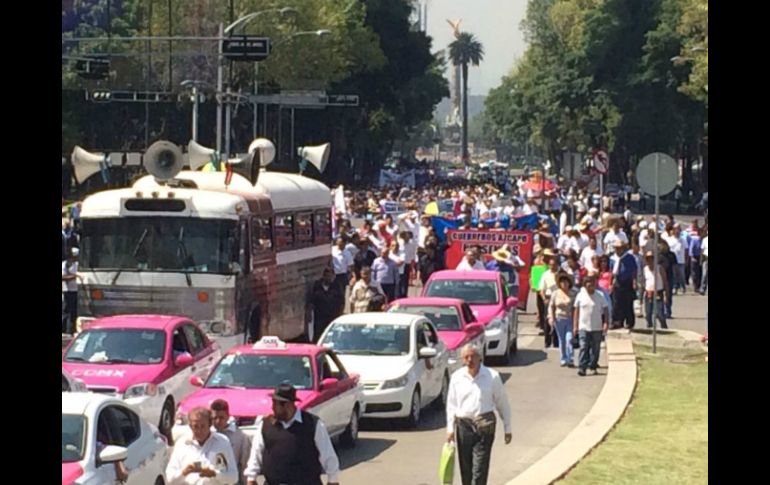 CIUDAD DE MÉXICO (12/OCT/2016).- Cerca de 31 taxistas, uno por cada estado de la República, integran la comisión que ingresó alrededor de las 14:20 horas a la Secretaría de Gobernación, donde se reunirán con autoridades para entregar su pliego petitorio.Entre las demandas están la de retirar los servicios de transporte privado a través de aplicaciones móviles.Más de dos mil 500 taxistas de la Ciudad de México, Estado de México, Aguascalientes, Hidalgo, Guanajuato, Jalisco, Sinaloa, Yucatán, Q. Roo, entre otros estados, se reunieron en el Ángel de la Independencia y avanzaron sobre Reforma hacia el Palacio de Cobian.Mientras se concentraban algunos taxistas trataron de impedir el paso a los conductores de Uber que circulaban sobre la lateral de Paseo de la Reforma, incluso golpearon los vehículos, pero los organizadores de la movilización detuvieron las agresiones.Policías capitalinos replegaron a los manifestantes que se encontraban aún en las inmediaciones del Ángel de la Independencia, con lo que se logró abrir la circulación hacia Chapultepec.Los taxistas denuncian que fueron encapsulados y sus carros fueron remitidos a los corralones, aunque la SSP no ha reportado el hecho.