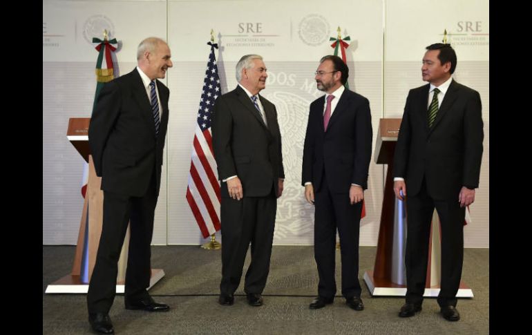 CIUDAD DE MÉXICO (23/FEB/2017).- Rex Tillerson, secretario de Estado de Estados Unidos, reconoció que hay "lazos de cooperación entre México y Estados Unidos" en torno a temas de migración, seguridad y de comercio.En conferencia de prensa conjunta con el secretario de Seguridad de Estados Unidos, Jonh Kelly, así como con los secretarios de Relaciones Exteriores, de Gobernación y de Hacienda, Luis Videgaray, Miguel Ángel Osorio Chong y José Antonio Meade, respectivamente, Tillerson confió en que se continúe con el diálogo entre ambas naciones.De igual forma, el funcionario estadounidense reconoció que hay una necesidad de poner un alto al flujo de armas y drogas en la frontera, pero también habló de los intercambios estudiantiles que suceden en México y EU.Tillerson se pronunció por un "intercambio productivo por el bien de una mayor prosperidad" en la región.