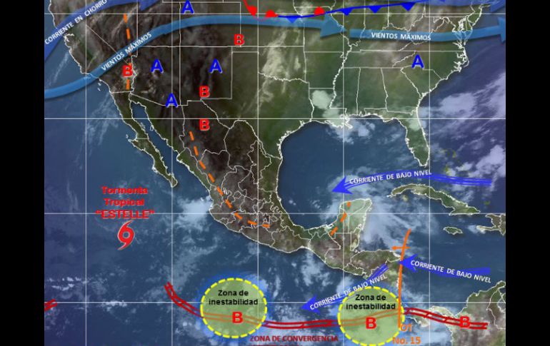 México | El fenómeno meteorológico continúa su trayectoria hacia el oeste-noroeste Tormenta 'Estelle' se aleja del territorio nacional El fenómeno meteorológico continúa su trayectoria hacia el oeste-noroeste Por: NTX 18 de julio de 2016 - 20:25 hs Se prevé que 'Estelle' se convierta en huracán categoría 1 entre la noche y durante las primeras horas del martes. TWITTER / @conagua_clima CIUDAD DE MÉXICO (18/JUL/2016).- La tormenta tropical “Estelle” continúa con su trayectoria hacia el oeste-noroeste a 17 kilómetros por hora, por lo que seguirá alejándose de territorio nacional, aunque prevalecerán los efectos de sus bandas nubosas en el occidente del país. De acuerdo con su información más reciente, el Servicio Meteorológico Nacional (SMN) reveló que este sistema se ubicó a 525 kilómetros al oeste-suroeste de Isla Socorro, Colima y 835 kilómetros al suroeste de Cabo San Lucas, Baja California Sur. El meteoro presenta vientos máximos sostenidos de 110 kilómetros por hora y rachas de hasta 140, con un radio de vientos de 95 kilómetros por hora que favorecen la generación de oleaje de cuatro metros de altura. Se prevé que “Estelle” se convierta en huracán categoría 1 entre la noche y durante las primeras horas del martes, cuando se ubique a 880 kilómetros al suroeste de Cabo San Lázaro y 910 kilómetros al oeste-suroeste de Los Cabos, Baja California Sur, sin que represente un peligro para el país. El SMN recomendó a la población en general extremar precauciones en las zonas de los estados mencionados por lluvias, viento y oleaje (incluida la navegación marítima) y atender las recomendaciones emitidas por las autoridades del Sistema Nacional de Protección Civil, en cada entidad. Temas Estados Tormenta tropical Lluvias en el país Lee También Suspenden clases en estos 10 municipios de Jalisco ante el paso de tormenta tropical 'Raymond' Viernes de tormentas en Guadalajara; aparecerán a esta hora LLUVIA en GDL por la noche, pronóstico del clima para hoy, 9 de octubre Tormenta tropical "Raymond" mantiene en alerta a estos estados el fin de semana Recibe las últimas noticias en tu e-mail Todo lo que necesitas saber para comenzar tu día Registrarse implica aceptar los Términos y Condiciones