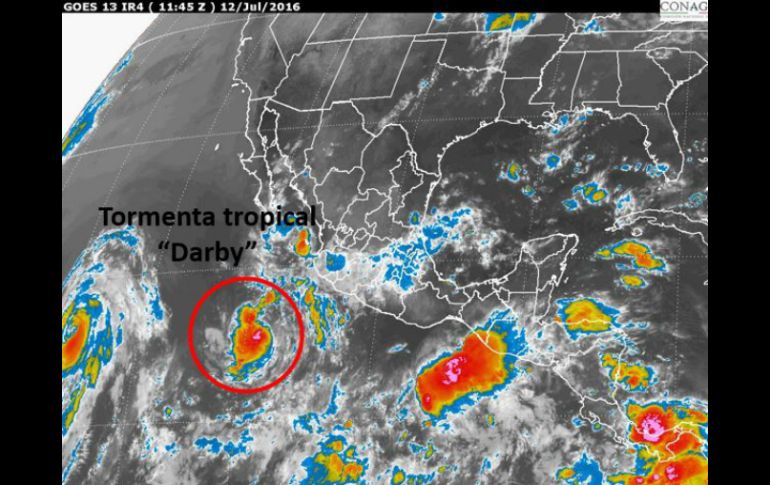México | El fenómeno evoluciona esta mañana y da origen a un nuevo ciclón en las aguas oceánicas Tormenta tropical 'Darby' se forma en el Pacífico El fenómeno evoluciona esta mañana y da origen a un nuevo ciclón en las aguas oceánicas Por: SUN 12 de julio de 2016 - 10:48 hs ''Darby'' se desplaza hacia el oeste a 17 kilómetros por hora, por lo que el SMN pide a la población extremar precauciones. ESPECIAL / smn.conagua.gob.mx CIUDAD DE MÉXICO (12/JUL/2016).- La depresión tropical 5-E evolucionó esta mañana de martes a la tormenta tropical "Darby" en aguas del Océano Pacífico, informó el Servicio Meteorológico Nacional (SMN). En un reporte meteorológico, el organismo dependiente de la Conagua detalló que dicho ciclón se ubicó a las 10:00 horas a 535 kilómetros (km) al suroeste de Playa Perula, Jalisco, y a 555 km al suroeste de Manzanillo, Colima. "Darby" se desplaza hacia el oeste a 17 kilómetros por hora (km/h), por lo que el SMN pidió a la población extremar precauciones. La tormenta tropical mantiene vientos máximos sostenidos de 65 km/h y rachas de 85 km/h. De acuerdo con el SMN, este fenómeno meteorológico reforzará el potencial de lluvias intensas en el occidente del país. Ante ello, recomendó: "Extremar precauciones a la población en general en las zonas de los estados mencionados por lluvias, viento y oleaje (incluyendo la navegación marítima) y atender las recomendaciones emitidas por las autoridades del Sistema Nacional de Protección Civil, en cada entidad". Temas Estados Huracanes Clima Tormenta tropical SMN Lluvias en el país Lee También Clima en Chapala hoy: el pronóstico para el martes 14 de octubre de 2025 Clima en El Salto hoy: el pronóstico para el martes 14 de octubre de 2025 Clima en Guadalajara hoy: el pronóstico para el martes 14 de octubre de 2025 Clima en Mazamitla hoy: el pronóstico para el martes 14 de octubre de 2025 Recibe las últimas noticias en tu e-mail Todo lo que necesitas saber para comenzar tu día Registrarse implica aceptar los Términos y Condiciones