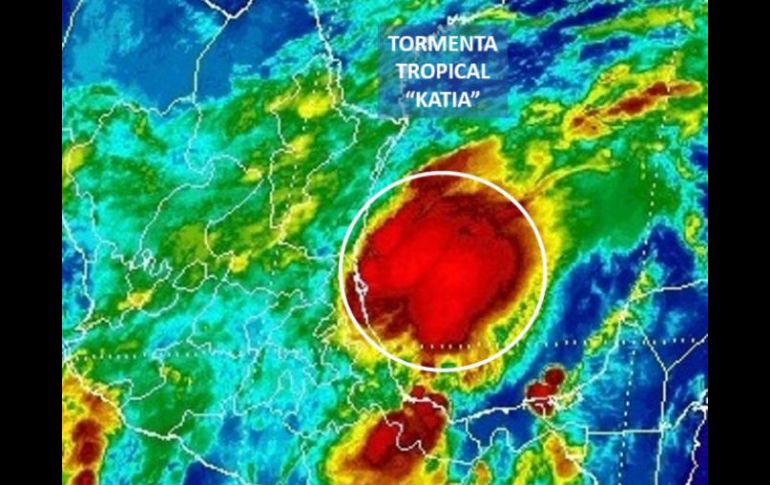 CIUDAD DE MÉXICO (06/SEP/2017).- El Servicio Meteorológico Nacional (SMN) informó que se ha desarrollado la tormenta tropical ''Katia'' en el occidente del Golfo de México, a partir de la depresión tropical número 13.En su más reciente aviso, el organismo expuso que la amplia circulación del sistema favorece el temporal de lluvias en el oriente, centro y sureste del país.''Katia'' se desplaza hacia el sureste, debido a la interacción con el frente frío número dos.Indicó que el fenómeno se ubica 165 kilómetros al este de Tampico, Tamaulipas, y a 120 al este-noreste de Cabo Rojo, Veracruz.Indicó que se estableció una zona de vigilancia en costas de Tamaulipas y Veracruz.Su desplazamiento actual es de este-sureste a cuatro kilómetros por hora con vientos sostenidos de 56 kilómetros por hora, y con rachas de 85 kilómetros.El organismo dependiente de la Comisión Nacional del Agua (Conagua) pronosticó que ''Katia'' ocasionará tormentas intensas a puntuales torrenciales en Tamaulipas, Puebla y Veracruz.Tormentas muy fuertes con puntuales intensas en San Luis Potosí, Hidalgo, Oaxaca, Tabasco y Chiapas, y tormentas fuertes con puntuales muy fuertes en Nuevo León y Tlaxcala.El SMN exhortó a la población en general a extremar precauciones a la población en general en las zonas de los estados mencionados por lluvias, viento y oleaje (incluyendo la navegación marítima) y atender las recomendaciones emitidas por las autoridades del Sistema Nacional de Protección Civil, en cada entidad.