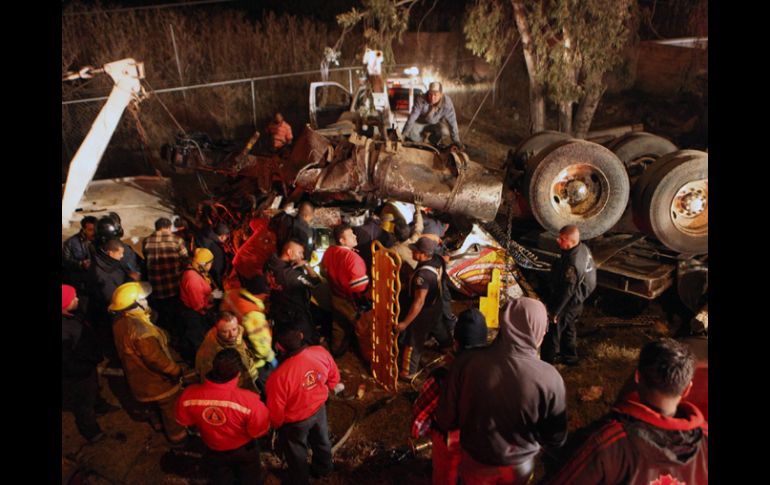 México | Caseta de San Marcos, Estado de México Tráiler arrasa con retén federal; hay 13 muertos El accidente deja un número indeterminado de heridos Por: SUN 22 de diciembre de 2010 - 01:17 hs Un tráiler embistió a un retén de la Policía Federal e impactó a siete vehículos. EL UNIVERSAL / ESTADO DE MÉXICO (22/DIC/2010).- El accidente de un tráiler que embistió a un retén de la Policía Federal e impactó a siete vehículos dejó un saldo preliminar de 13 muertos y un número indeterminado de heridos en la autopista México-Puebla, municipio de Chalco, Estado de México. El percance se registró a las 01:30 horas a la altura de la caseta de peaje No. 71 de San Marcos, cuando un tráiler cargado con 45 toneladas de varilla, al parecer se quedó sin frenos, y arrasó con los policías federales ministeriales a cargo de un retén de seguridad. Temas Muertes Estados Accidentes México Estado de México Recibe las últimas noticias en tu e-mail Todo lo que necesitas saber para comenzar tu día Registrarse implica aceptar los Términos y Condiciones
