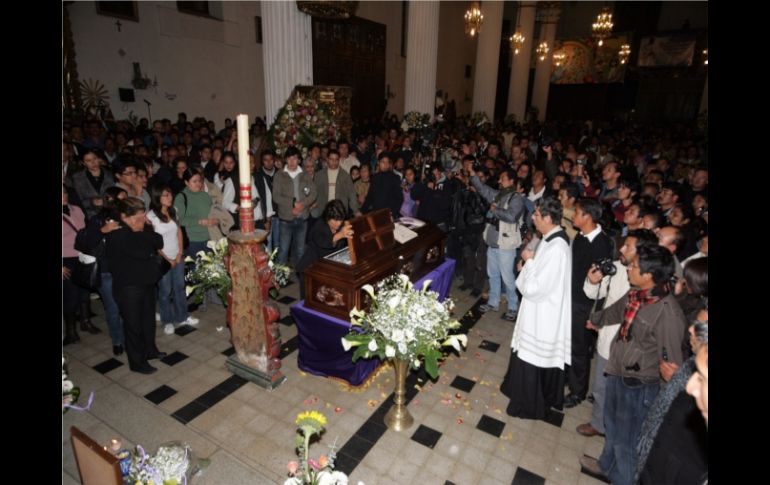 México | Cientos de fieles lloran y cubren con pétalos de rosas una senda hacia el féretro Velan a Samuel Ruiz en San Cristóbal de las Casas Entre los dolientes que recibieron el cadáver se encuentran integrantes de la diócesis en los tiempos en los que Ruiz la encabezó Por: NTX 25 de enero de 2011 - 10:46 hs Samuel Ruiz, fue vestido con una mitra bordada a mano con motivos indígenas. NOTIMEX / SAN CRISTÓBAL DE LAS CASAS, CHIAPAS (25/ENE/2011).- En medio de gran tristeza, dolor, flores, oraciones y veladoras yacen en la Catedral de la Paz los restos de Monseñor Samuel Ruiz García, quien es despedido por cientos de indígenas que han comenzado a llegar para darle el último adiós. Cientos de fieles, amigos y familiares de obispo emérito vieron llegar esta madrugada el féretro al que no han dejado sólo llorándole y formando un camino de pétalos de rosas, así como de veladoras desde su féretro hasta la entrada de la Catedral, en cuyas paredes también se observan carteles en para manifestarle su amor y su pesar por su partida. Entre los dolientes que recibieron el cadáver estuvieron el gobernador de Chiapas, Juan Sabines Guerrero; el actual obispo, Felipe Arizmendi Esquivel y su auxiliar, Enrique Díaz Díaz, además de Luís Héctor Alvarez, en representación del gobierno federal. Nadie quiso hacer declaraciones, solamente de manera breve, el obispo de Saltillo, Raúl Vera López, quien fuera coadjutor de esta diócesis en los tiempos en los que Ruiz la encabezó, dijo que siempre estuvo cerca del fallecido pastor de quien ahora le queda su ejemplo. "El nos deja una historia bellísima de trabajo por los más pobres, difícil de olvidar su trabajo, pero seguiremos su ejemplo", comentó. Como lo acostumbró en su labor de ministro de la Iglesia, Samuel Ruiz, fue vestido para su última morada con una mitra bordada a mano con motivos indígenas, de igual forma su estola y sus ornamentos observados por los autóctonos que hacen colas para verlo. A la usanza local, durante el velorio, la diócesis repartió café y pan entre los dolientes con el apoyo de muchas fieles voluntarias que se turnaron para estar pendientes de que todos reciban una porción de café caliente para mitigar también el fuerte frío de las primeras horas de este 25 de enero. A su vez, Protección Civil estatal ha instalado en afuera de la Catedral servicios y espacios para que los indígenas descansen y se protejan de las inclemencias del tiempo. De igual forma, las autoridades locales han cerrado el tráfico en los alrededores y piden que se utilicen vías alternas. Incluso, el ayuntamiento municipal ha suspendido los llamados "miércoles ciudadanos" para mostrar el duelo por el fallecimiento del religioso. Está previsto que a las 12:00 horas el Nuncio apostólico en México, Christopher Pierre, oficie una misa en la catedral y que a las 19:00 horas también se oficie otra misa especial para recordar el 51 aniversario de la consagración episcopal del llamado Jtatic Samuel, el cuál, paradójicamente se conmemora este día. Temas Chiapas Estados Iglesia Católica Decesos de personalidades Lee También "Raymond" baja su potencia, pero tocará tierra en horas En Hidalgo, caminos destrozados complican rescates y ayuda Así se celebrará en Guanajuato el Día de Muertos Lluvias dejan 37 muertos en cuatro estados de México Recibe las últimas noticias en tu e-mail Todo lo que necesitas saber para comenzar tu día Registrarse implica aceptar los Términos y Condiciones