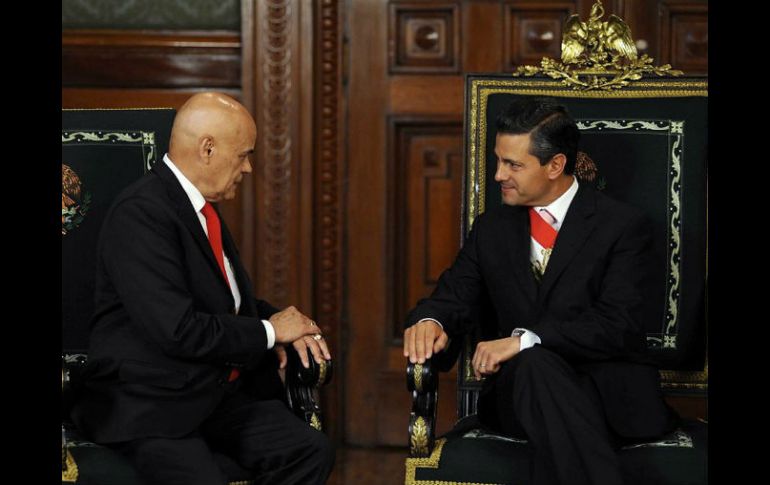 México | Embajador asegura que está agradecido con Peña por reconocer a Maduro como presidente Venezuela ve oportunidad para mejorar lazos con México Embajador asegura que está agradecido con Peña por reconocer a Maduro como presidente Por: EFE 3 de julio de 2013 - 16:13 hs El nuevo embajador de Venezuela en México, Hugo José García junto al Presidente Enrique Peña Nieto. EFE / CIUDAD DE MÉXICO (03/JUL/2013).- El nuevo embajador de Venezuela en México, Hugo José García, consideró hoy que el actual es un buen momento para mejorar las relaciones entre ambos países, después de presentar sus cartas credenciales al Presidente Enrique Peña Nieto. "Pienso que es una gran oportunidad para estrechar los lazos entre México y Venezuela porque estaban un poco dormidas esas relaciones, y hoy el señor presidente Peña Nieto una vez que asumió su gobierno ha presentado una especie de apertura hacia Venezuela", declaró García en rueda de prensa. Afirmó que el pueblo venezolano "está muy agradecido" con Peña Nieto por asistir personalmente a las exequias del presidente Hugo Chávez en marzo pasado, y por reconocer a Nicolás Maduro como mandatario legítimo de Venezuela en el momento en que el Consejo Nacional Electoral emitió sus resultados en abril. Finalmente adelantó que como muestra del interés de su país para reforzar las relaciones con México próximamente la vicecanciller venezolana para América Latina, Verónica Guerrero, realizará una visita a este país. En septiembre del año pasado, el entonces canciller venezolano Nicolás Maduro aseguró que la relación con México "es buena y va a seguir siendo buena" con la llegada al poder en México de Peña Nieto, quien asumió la Presidencia el 1 de diciembre. "Aspiramos que se abra una oportunidad de mejorar aún más las relaciones económicas, sociales, políticas con México, que es un país vital" para la construcción de la integración latinoamericana, dijo. Temas Venezuela Política Enrique Peña Nieto Relaciones Exteriores Lee También El "próximo premio será la libertad de Venezuela": María Corina Machado La aparente estabilidad mexicana La embriaguez del poder: cuando el alma se emborracha de sí misma Ni tan buenos ni tan malos Recibe las últimas noticias en tu e-mail Todo lo que necesitas saber para comenzar tu día Registrarse implica aceptar los Términos y Condiciones