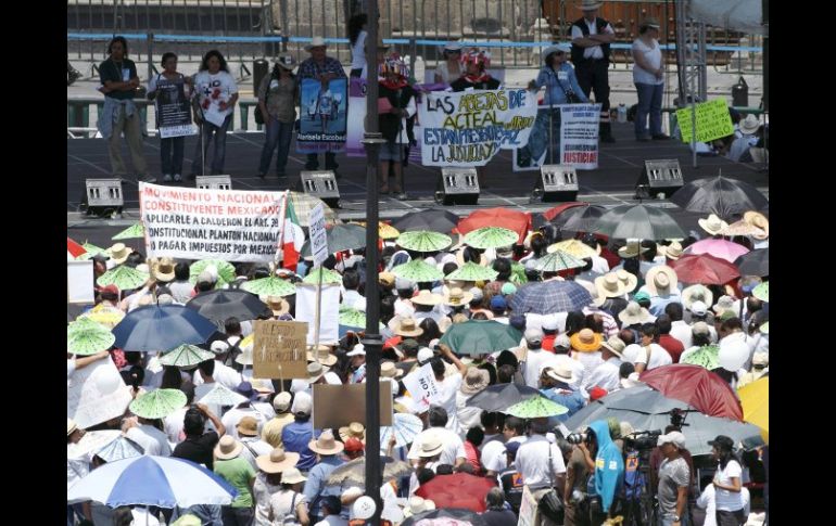 México | Demandan un alto a la inseguridad ante manifestantes de la Marcha por la Paz Víctimas de la violencia unen su voz en el Zócalo Demandan un alto a la inseguridad ante manifestantes de la Marcha por la Paz Por: SUN 8 de mayo de 2011 - 17:15 hs Ciudadanos y activistas de distintos organismos se reúnen en el Zócalo. ARCHIVO / - Marcha por la Paz llega a Zócalo- Marcha por la Paz parte al Zócalo - Reportan saldo blanco durante la Marcha por la Paz- La estructura de las instituciones está podrida: Javier Sicilia CIUDAD DE MÉXICO (08/MAY/2011).- Tras su arribo a la Plaza de la Constitución, dirigentes de la Marcha Nacional por la Paz hicieron uso del micrófono del estrado para protestar por la violencia en el país, narrar sus experiencias y exigir un alto a la inseguridad. Decenas de personas subieron al templete para unir su voz a la de miles que abarrotan el Zócalo capitalino en demanda de paz. Entre aplausos, expresiones de apoyo y al grito de "no están solos" la vanguardia de la Marcha Nacional por la Paz comenzó su ingreso al primer cuadro de la ciudad alrededor de las 16:00 horas, cuyas calles están repletas de ciudadanos unidos bajo la exigencia de "Ya basta". El escritor y poeta Javier Sicilia, quien encabeza la marcha, levanta la mano derecha en señal de agradecimiento y junto a él caminan decenas de activistas sociales como del Comité del 68, el Movimiento la Otra Campaña del Ejército Zapatista de Liberación Nacional (EZLN), politólogos, amigos y familiares. Destacan cientos de pancartas con el nombre de personas que han sido víctimas de secuestros o del crimen organizado. "Alberto Valladolid, Jaime Aceves, y Enrique García. Desaparecido en Colima el 6 de diciembre de 2010". Sobre 5 de mayo los organizadores colocaron entre los edificios una enorme manta color rojo y en medio el logotipo de no más sangre. El hijo de Sicilia murió hace más de un mes a manos en manos del crimen organizado, se alista para leer el pliego de la sociedad civil en contra de la violencia. Temas Estados Distrito Federal Manifestaciones en México Javier Sicilia Lee También Clima en Ciudad de México hoy: el pronóstico para el domingo 12 de octubre de 2025 'Chicharito' marca su primer gol al América en partido amistoso Reformas a Ley de Amparo no limita derechos ciudadanos Festival del Pan de Muerto en CDMX: Fechas, horarios y actividades Recibe las últimas noticias en tu e-mail Todo lo que necesitas saber para comenzar tu día Registrarse implica aceptar los Términos y Condiciones