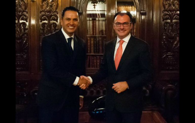 México | El titular de la SHCP y Roberto Sandoval dialogaron sobre los proyectos en marcha Videgaray sostiene reunión de trabajo con gobernador de Nayarit El titular de la SHCP y Roberto Sandoval dialogaron sobre los proyectos en marcha y los planes para realizar en el estado Por: NTX 31 de agosto de 2015 - 15:37 hs El encuentro entre Sandoval Castañeda (i) y Videgaray (d) ocurrió en las oficinas de la Secretaría de Hacienda. TWITTER / @LVidegaray CIUDAD DE MÉXICO (31/AGO/2015).- El secretario de Hacienda, Luis Videgaray Caso, y el gobernador de Nayarit, Roberto Sandoval Castañeda, sostuvieron hoy una reunión de trabajo en la que revisaron el avance en la ejecución del gasto público en aquella entidad. La Secretaría de Hacienda y Crédito Público ( SHCP) informó que durante el encuentro, Videgaray y Sandoval Castañeda dialogaron sobre los proyectos en marcha y los que se planean realizar próximamente en el estado de Nayarit. En un comunicado, señaló que el Secretario de Hacienda reiteró el compromiso del gobierno federal por apoyar el desarrollo de la entidad y de todo el país. Por su parte, en el encuentro celebrado en las oficinas de la Secretaría de Hacienda; el gobernador de Nayarit reconoció el apoyo recibido y calificó el encuentro como una reunión positiva y fructífera, agregó. Temas SHCP Estados Nayarit Luis Videgaray Lee También KIVA Inversión inmobiliaria integral presenta Atriva, esencia viva Angelina Jolie planea dejar EU por diferencias con gobierno de Trump Trump dijo merecer Nobel de la Paz por haber "terminado con siete guerras" ¿Trump ganaría el Nobel de la Paz? Veteranos del Comité de premiación responden Recibe las últimas noticias en tu e-mail Todo lo que necesitas saber para comenzar tu día Registrarse implica aceptar los Términos y Condiciones