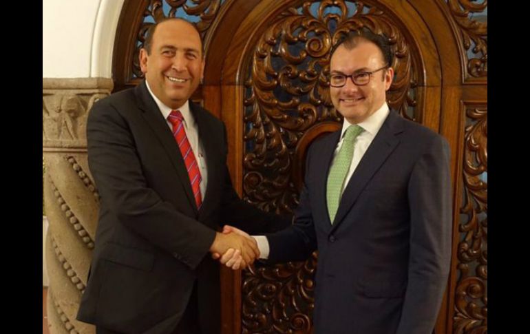 México | Analizaron los proyectos y planes inmediatos de la administración estatal Videgaray y Moreira analizan finanzas de Coahuila El gobernador del estado y el titular de la SHCP analizaron los proyectos y planes inmediatos de la administración estatal Por: NTX 1 de septiembre de 2015 - 17:51 hs La reunión entre el gobernador de Coahuila, Rubén Moreira (i) y Luis Videgaray (d) se llevó a cabo en el Palacio Nacional. TWITTER / @rubenmoreiravdz CIUDAD DE MÉXICO (01/SEP/2015).- El secretario de Hacienda, Luis Videgaray Caso, y el gobernador del estado de Coahuila, Rubén Moreira Valdés, analizaron la situación que guardan las finanzas de la entidad, así como los proyectos y planes inmediatos de la administración estatal. En una reunión de trabajo en Palacio Nacional, Videgaray Caso reiteró todo el apoyo necesario por parte de la Secretaría de Hacienda para encauzar de la mejor manera la marcha económico-financiera de esa entidad del norte del país. La Secretaría de Hacienda y Crédito Público ( SHCP) informa en un comunicado que Moreira Valdés calificó esta reunión como muy provechosa y agradeció el respaldo que el gobierno federal, a través del titular de la dependencia federal, le brinda a los coahuilenses. Temas SHCP Estados Coahuila Luis Videgaray Recibe las últimas noticias en tu e-mail Todo lo que necesitas saber para comenzar tu día Registrarse implica aceptar los Términos y Condiciones