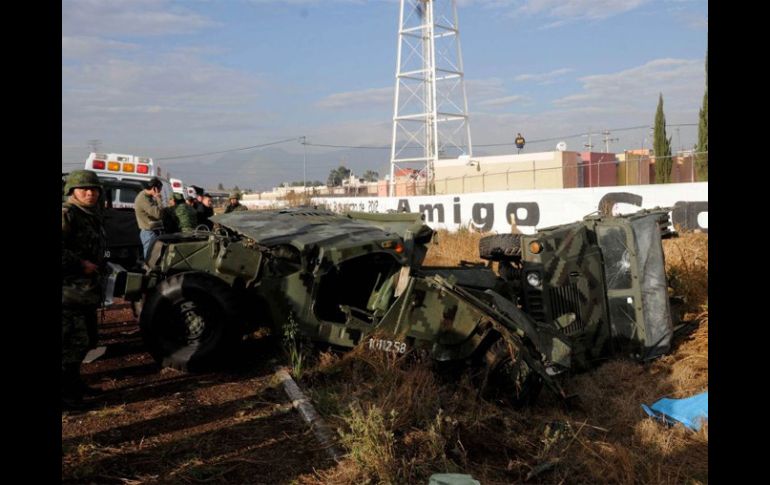 México | De los fallecidos uno era militar el otro civil y seis militares más están lesionados Volcadura deja dos personas muertas en el Estado de México Elementos de Protección Civil de ambos municipios, así como de la Secretaria de Seguridad Ciudadana, realizan labores de auxilio y apoyo al personal del Ejército mexicano Por: NTX 9 de febrero de 2012 - 08:34 hs El accidente dejó a seis militares lesionados. EL UNIVERSAL / ACOLMAN, ESTADO DE MÉXICO (09/FEB/2012).- Autoridades de Protección Civil dieron a conocer que un accidente en la autopista México-Pirámides, en los límites de Acolman y Ecatepec dejó dos personas muertas, un civil y un militar, y seis militares lesionados. Elementos de Protección Civil de ambos municipios, así como de la Secretaria de Seguridad Ciudadana, realizan labores de auxilio y apoyo al personal del Ejército mexicano, a la altura del kilómetro 3, en donde se registró un choque de dos vehículos de la Secretaria de la Defensa Nacional (Sedena), uno de los cuales se volcó. En el percance dos personas murieron, de las cuales uno es militar y otro un civil; además, seis militares resultaron lesionados, cuatro de ellos se reportan graves, por lo que fueron trasladados al Hospital Militar vía helicóptero. Temas Ejército Estados Accidentes México Lee También Angelina Jolie planea dejar EU por diferencias con gobierno de Trump Trump dijo merecer Nobel de la Paz por haber "terminado con siete guerras" ¿Trump ganaría el Nobel de la Paz? Veteranos del Comité de premiación responden El SAT va contra factureras; pondrá "piso parejo" en pago de impuestos Recibe las últimas noticias en tu e-mail Todo lo que necesitas saber para comenzar tu día Registrarse implica aceptar los Términos y Condiciones