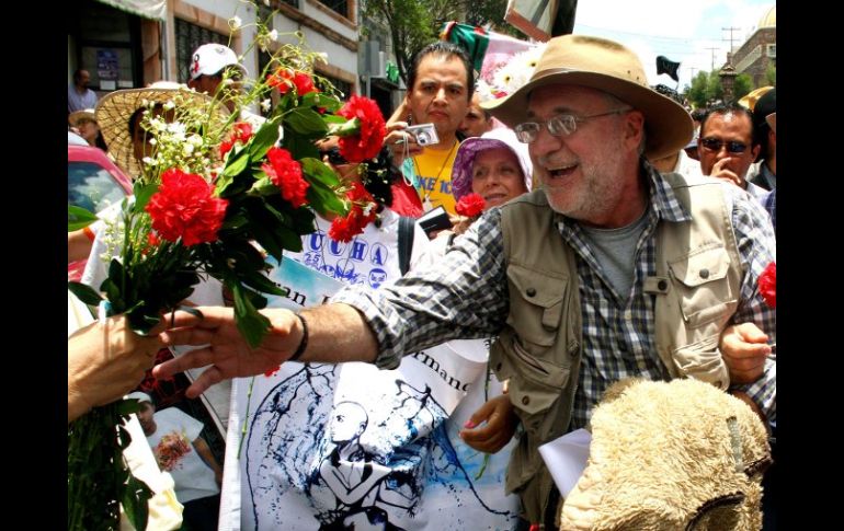 México | En Zacatecas, el poeta exige a los procuradores esclarecer los casos de violencia Ya perdimos el miedo: Sicilia Los participantes en la Caravana por la Paz llaman al Presidente a frenar la violencia Por: SUN 6 de junio de 2011 - 16:44 hs Javier Sicilia recibe flores en su paso por Zacatecas. AFP / - Sicilia, preocupado por ''doble discurso'' del Gobierno Federal -Caravana por la Paz se enfila aestados azotados por el crimen ZACATECAS, ZACATECAS (06/JUN/2011).- "Nuestro dolor no lo vamos a convertir en odio", aseguró Javier Sicilia luego de leer el manifiesto de Zacatecas, escrito por los integrantes de la Caravana Nacional por la Paz que va rumbo a Ciudad Juárez, en el que denunciaron hechos de violencia contra activistas y defensores de derechos humanos perpetrados por la Policía Federal. En el manifiesto de Zacatecas, los participantes hacen un llamado directo al Presidente Felipe Calderón para que de inmediato frene la violencia. "No entendemos qué buscaba la Policía Federal en el Centro de Derechos Humanos Paso del Norte, pero si el objetivo es amedrentarlos, se equivoca, porque si salimos a las calles y vamos en una caravana es por que ya perdimos el miedo, y ahora salimos a exigir justicia", dicen en el manifiesto. En un mitin en la plaza de Armas de la ciudad de Zacatecas, el poeta y escritor exigió a los procuradores de la República esclarecer todos los casos de violencia, asesinatos, secuestros y desapariciones. En el acto público decenas de familiares de víctimas leyeron sus testimonios y exigieron que el Gobierno de Zacatecas frene la violencia en el estado que ha provocado centenares de desaparecidos. Activistas sociales de Ciudad Juárez denunciaron esta mañana que personas que viajaban en cinco patrullas de la Policía Federal allanaron las instalaciones de Derechos Humanos Paso del Norte, rompiendo los candados y destruyendo documentos y equipo de cómputo. De acuerdo con los denunciantes la Policía Federal se justificó diciendo que fue en búsqueda de un presunto criminal. Los manifestantes aclararon que los federales se presentaron sin orden de cateo. Temas Estados Zacatecas Manifestaciones en México Javier Sicilia Recibe las últimas noticias en tu e-mail Todo lo que necesitas saber para comenzar tu día Registrarse implica aceptar los Términos y Condiciones