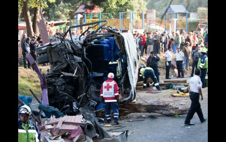 México | Entre las víctimas reportan a un profesor muerto Ya suman siete los muertos por accidente de alumnos de UNAM El autobús transportaba a 38 estudiantes que se dirigían a Michoacán a una práctica, cuando el conductor de un remolque de doble remolque perdió el control impactándolos Por: SUN 12 de abril de 2012 - 13:58 hs Aspecto general del sitio donde ocurrrió el accidente. EFE / Rectifican número de víctimas en accidenteTOLUCA, ESTADO DE MÉXICO (12/ABR/2012).- La Secretaría de Seguridad Ciudadana del Estado de México informó que el número de muertos por el accidente en la carretera México-Toluca, donde se vio involucrado un autobús con alumnos y profesores de la UNAM, ascendió a siete. Entre las víctimas reportan a un profesor muerto. El accidente, ocurrido a la altura del monumento al Caminero, en el municipio de Ocoyoac, provocó un gran caos vial, pero tras cuatro horas la vialidad ya fue reabierta. El autobús transportaba a 38 estudiantes de la institución que se dirigían a Michoacán a una práctica, cuando el conductor de un tráiler de doble remolque perdió el control impactándolos. Las primeras versiones apuntan que se quedó sin frenos. El secretario de Seguridad Ciudadana, Salvador Neme, informó que el chofer del tráiler se encuentra detenido y será puesto a disposición de la Policía Federal. Temas UNAM Estados Accidentes México Estado de México Lee También Fallece influencer Fede Dorcaz en presunto intento de robo en la CDMX ¿Bad Bunny fuera del Super Bowl? Este sería el show alternativo Poza Rica, inundado por desbordamiento del río Cazones Bad Bunny permanece sentado durante "God Bless America" y enciende las redes Recibe las últimas noticias en tu e-mail Todo lo que necesitas saber para comenzar tu día Registrarse implica aceptar los Términos y Condiciones