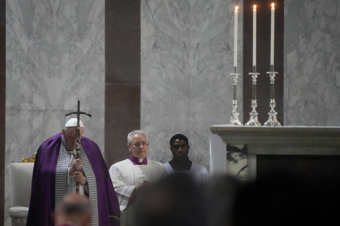 El Papa Francisco arremetió hoy contra el individualismo y la "idolatría del yo" y advirtió que en la Iglesia "no cuenta lo exterior o los juicios humanos" sino el "amor y la verdad" en su homilía durante la misa por el Miércoles de Ceniza, en cuya procesión no participó por sus problemas de movilidad."La ceniza que hoy recibimos en la cabeza nos dice que cada presunción de autosuficiencia es falsa y que idolatrar el 'yo' es destructivo y nos encierra en la jaula de la soledad", dijo Francisco, sentado junto al altar de la basílica de Santa Sabina, una actitud que resumió con "mirarse al espejo con la fantasía de ser perfectos o de estar en el centro del mundo".Como es tradición, el Pontífice presidió este rito que abre la Cuaresma, el periodo de cuarenta días hasta la Semana Santa, en la antigua basílica de Santa Sabina, en la colina romana del Aventino.Sin embargo, no pudo participar en la procesión con la que el clero llega cada año a este templo desde la cercana iglesia de San Anselmo, a causa de los problemas de rodilla que le impiden permanecer de pie desde hace algunos meses.Por esa misma razón, el Pontífice leyó su homilía sentado y ataviado con paramentos morados, propios de la Cuaresma: "Este es el tiempo favorable para convertirnos, para cambiar la mirada antes que nada sobre nosotros mismos, para vernos por dentro", invitó ante obispos, cardenales, curas, religiosas y los frailes dominicos de Santa Sabina."Cuántas veces nos centramos en nuestros deseos o en lo que nos falta, alejándonos del centro del corazón, olvidándonos de abrazar el sentido de nuestro ser en el mundo", refirió.Y alentó: "La Cuaresma es un tiempo de verdad para quitarnos las máscaras que llevamos cada día aparentando ser perfectos a los ojos del mundo; para luchar, como nos ha dicho Jesús en el Evangelio, contra la falsedad y la hipocresía. No las de los demás, sino las nuestras".Su mensaje implica también a la Iglesia católica, cuyos "gestos y ritos muchas veces no tocan la vida, no son auténticos", lamentó."Quizá los hacemos sólo para que los demás nos admiren, para recibir el aplauso, para atribuirnos el crédito. Recordamos que en la vida personal, como en la vida de la Iglesia, lo que no cuenta es el exterior, los juicios humanos y el aprecio del mundo, sino la mirada de Dios, que lee el amor y la verdad", sostuvo.Para cumplir con estos objetivos, Francisco recomendó "tres grandes vías": La limosna, que no debe ser un "gesto rápido para limpiarse la conciencia" sino experimentar la pobreza del prójimo, la oración sincera y el ayuno.Acto seguido, Francisco, levantado por unos instantes, se retiró el solideo para recibir en su cabeza las cenizas de parte del cardenal italiano y penitenciario mayor, Mauro Piacenza, que sustituyó al Papa a la cabeza de la procesión que abrió esta liturgia.Después, el Pontífice impuso la ceniza a algunos miembros del clero con la fórmula "Recuerda, hombre, que polvo eres y en polvo te convertirás".JM
