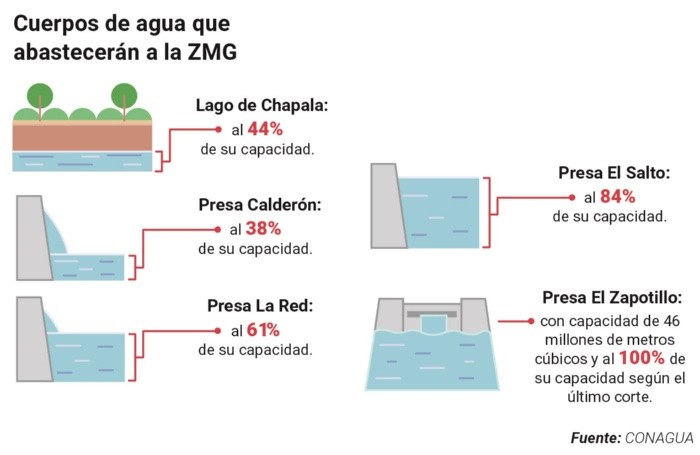Tras años de conflictos con los pueblos vecinos, autoridades estatales y federales concluyeron la obra de la presa El Zapotillo, con lo que la Zona Metropolitana de Guadalajara recibirá tres metros cúbicos por segundo más de agua. En la comunidad de Temacapulín, pueblo ubicado cerca de esta presa y en el municipio de Cañadas de Obregón, se llevó a cabo el evento protocolario de inauguración de esta obra, que contó con la presencia del Presidente Andrés Manuel López Obrador, la presidenta electa, Claudia Sheinbaum, y el gobernador de Jalisco, entre otros, tras un recorrido en las instalaciones. López Obrador resaltó las adecuaciones que se hicieron a la cortina de la presa para evitar la inundación de Temacapulín, Acasico y Palmarejo, comunidades que fueron amenazadas con ser inundadas con el proyecto original de la presa, y razón por la cual sus habitantes se opusieron por más de 15 años. “Esas seis ventanas son las que impiden la inundación de los pueblos. Es algo que se hizo de manera conjunta con los ingenieros de las comunidades. Y así se resolvió este problema. Ahora Guadalajara va a contar con 3 mil litros de agua por segundo”, afirmó.Germán Martínez, director de la Comisión Nacional del Agua (Conagua), comentó que la obra está al 100 por ciento tras la conclusión de las ventanas vertedoras para evitar que la cortina estuviera a más de 80 metros de altura. “Las modificaciones a la presa, que tiene capacidad para almacenar casi 46 millones de metros cúbicos de agua, están concluidas al 100% y las seis ventanas vertedoras de la cortina ya han iniciado su operación. Estas ventanas las diseñó Conagua en coordinación con los técnicos de las comunidades”, señaló Martínez.El proyecto original contemplaba que la cortina de la presa tuviera una altura superior a los 105 metros; sin embargo, fue reducida a 86 metros y luego se le colocaron las ventanas. Se proponía que suministrara agua del río Verde mediante un acueducto a la Zona Metropolitana de Guadalajara, así como a la ciudad de León, Guanajuato. El gobernador de Jalisco fue abucheado por asistentes, en su mayoría morenistas, aunque recibió el respaldo de Claudia Sheinbaum y Andrés Manuel López Obrador, quienes emitieron palabras de apoyo en su favor. Luego de ello, el mandatario estatal resaltó la conciliación para concretar el proyecto de la presa. “No se veía camino posible para un proyecto que inició en el sexenio de Fox, casi 20 años de fracasos. Se pudo conciliar las dos posturas; logramos un proyecto histórico”, expresó.El mandatario destacó también la inversión hecha por el Gobierno federal en esta administración, que fue superior a los ocho mil 600 millones de pesos. Según el proyecto de la Conagua, más de un millón de personas serán beneficiadas, ya que se complementó con la construcción de un acueducto que conectará El Zapotillo con las presas El Salto, La Red y Calderón.Habitantes de Temacapulín, Acasico y Palmarejo, las tres comunidades amenazadas de inundarse con la construcción de la presa El Zapotillo, ya pueden vivir en paz tras años de lucha para evitar la inundación de sus pueblos. María Ibarra, de 75 años de edad y que ha vivido toda su vida en Temaca, contó que fue parte de la lucha por no inundar su pueblo a lo largo de los 18 años desde que fue planteado el proyecto, lo que incluyó su participación en protestas tanto en Jalisco como a nivel nacional e internacional. Ahora espera vivir en paz. “Vivir en paz ya de tanta lucha. Íbamos a las marchas, al Congreso, para allá, para acá, a otros. Esperemos ya vivirlo en paz. Toda la vida he vivido aquí y 18 años de lucha”.En el evento de inauguración de la presa El Zapotillo de ayer, habitantes de Temacapulín, Acasico y Palmarejo estuvieron presentes, aunque muchos no pudieron entrar, pues el lugar fue reservado para servidores de la nación. Las tres comunidades esperan que no haya más amenazas en el futuro con proyectos similares.Claudia Gómez Godoy, encargada de la presa El Zapotillo y del Plan de Justicia de los Pueblos de Temacapulín, Acasico y Palmarejo, cuestionó el tono político que hubo con cientos de asistentes, por lo que pidió respeto para los habitantes de las tres comunidades y su lucha de años. Además, señaló que el plan de justicia para las tres comunidades no solamente incluyó a estos tres pueblos, sino que fue más allá. “No solamente abarcó a estas tres comunidades, sino que realizamos acciones para la reparación integral de estos pueblos. Estamos construyendo rutas, hay un trabajo que abarca más allá de estos”, dijo.Mencionó que todavía hay pendientes, como la construcción de una cancha de futbol en Temacapulín y un auditorio en la comunidad de Acasico.FRASES“Esas seis ventanas son las impiden la inundación de los pueblos. Ahora Guadalajara va a contar con tres mil litros de agua por segundo”.Andrés Manuel López Obrador, presidente de México.“La presa que tiene capacidad para almacenar casi 46 millones de metros cúbicos”.Germán Martínez, director de la Comisión Nacional del Agua (Conagua).“No se veía camino posible para un proyecto que inició en el sexenio de Fox, casi 20 años de fracasos. Hoy, se pudo hacer conciliar las dos posturas, logramos un proyecto histórico”.Gobernador de Jalisco. “Dar agua a la Zona Metropolitana de Guadalajara y al mismo tiempo, recuperar, evitar inundaciones, a través del diálogo, el apoyo y recuperar, mejor todavía, las comunidades, de lo que había”.Claudia Sheinbaum, presidenta electa de México.RED HIDRÍCALa presidenta electa de México, Claudia Sheinbaum, resaltó la inauguración del proyecto de la presa El Zapotillo ocurrida ayer con la presencia de autoridades de Jalisco y federales.La mandataria electa reconoció al presidente Andrés Manuel López Obrador por el proyecto de la presa El Zapotillo, principalmente por haber fomentado el diálogo para evitar inund