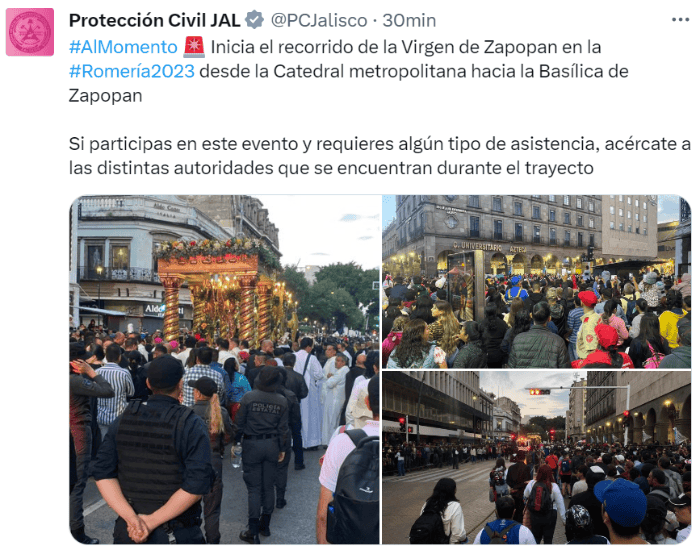 Este jueves 12 de octubre se lleva a cabo la tradicional Romería de Zapopan, donde la Virgen de la Expectación hace su recorrido de la Catedral Metropolitana de Guadalajara a su Basílica. Sigue aquí EN VIVO cada minuto de la Romería 2023: