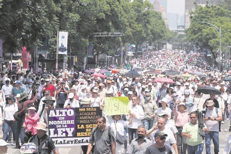 Miles de jaliscienses se manifestaron ayer a favor de la Suprema Corte de Justicia de la Nación (SCJN), que ha sido recurrentemente atacada por el Presidente Andrés Manuel López Obrador (AMLO).Con la Plaza de Armas como punto de reunión y con la frase “la Corte no se toca” como bandera, los participantes asistieron vestidos de blanco, luciendo pancartas con consignas como “la ley es la ley” y “yo confío en la SCJN”, además de otras que directamente señalaban su oposición al Presidente, a Morena y a la 4T.Entre los asistentes también se encontraron diferentes organizaciones civiles, como Misión Rescate México y Confío en México, rodeados de la “marea rosa”, que ya había expresado anteriormente su apoyo al INE y al Inai. Este último organismo autónomo volvió a ser defendido ayer junto al Kiosco de las Musas, donde se instaló una mesa para que los inconformes registraran su firma de asistencia.La capital de Jalisco fue una de las más de 50 ciudades que respondieron a la convocatoria nacional en apoyo a la Suprema Corte, en especial a la ministra presidente Norma Piña, quien ha sido señalada directamente desde Palacio Nacional por no compartir la visión del titular del Poder Ejecutivo, y atacada de manera violenta por seguidores de la 4T y su movimiento, con figuras de la ministra ahorcada y con ataúdes instalados afuera de la sede del Máximo Tribunal.En la Ciudad de México, los manifestantes gritaron “¡ministros valientes, el pueblo los defiende!”, y entre pancartas en las que se leía “la Corte no se toca”, miles de personas vestidas de blanco se concentraron en el Monumento a la Revolución para unirse a la movilización convocada por organizaciones civiles en respaldo a los ministros. Poco más de mil personas se reunieron ayer para manifestarse y apoyar a la Suprema Corte de Justicia de la Nación (SCJN) en la Plaza de Armas del Centro de Guadalajara, con el objetivo de hacer un frente civil ante los múltiples ataques que se han levantado en contra de diferentes ministros y en especial sobre la ministra presidente, Norma Piña.Uno de los organizadores de la marcha, Rubén López, de Misión Rescate México, destacó que esta protesta, además de mostrar su apoyo a la SCJN también busca defender al Instituto Nacional de Transparencia Acceso a la Información y Protección de Datos Personales (Inai), pues aún los senadores no han elegido sus comisionados.“Una vez más los ciudadanos salimos para levantar la voz y defender nuestras instituciones, que promueven nuestros derechos y libertades. El día de hoy (ayer) en particular estamos para defender al Inai, hay un tema pendiente con los comisionados que no han sido designados por el Senado de la República; estamos levantando la voz: tienen que ser designados, el derecho a la información se vulnera y no lo vamos a permitir, tanto el INE como el Inai son las conquistas ciudadanas más importantes de los últimos años, las reconocemos como conquistas de nosotros. “En segundo lugar, la defensa de los ministros de la Suprema Corte de Justicia de la Nación, encabezados por la ministra Piña que ha defendido de forma valiente e institucional el orden de la Constitución, por eso estamos aquí, somos muchos los que levantamos la voz”.Por su parte, Salvador Cosío Gaona, presidente de Confío en México, resaltó que es importante que la SCJN siga siendo el órgano de mayor peso en el país, más que cualquier autoridad municipal, estatal o federal.“Es muy importante que la gente se informe o razone lo que está ocurriendo. Estamos ante un riesgo inminente de que la Suprema Corte siga siendo atacada, y si los ministros se doblan o se quiebran, o se sienten intimidados de una forma compleja como en el ‘viernes negro’, cuando se aprobaron 20 reformas de diferentes temas y sobre todo si no lo anulan sería un precedente muy grave, que cualquier órgano colegiado municipal, estatal o federal, puedan hacer lo que quieran sin mayorías, sin procedimientos, sin nada y esto implica un Estado de derecho nulo, por eso aquí estamos para respaldar a la Suprema Corte de Justicia de la Nación y sobre todo el apoyo a la legalidad".Más de dos mil personas, según cifras oficiales, vestidas de blanco y con pancartas en defensa de la Corte con la leyenda “La ley es la ley. Los ciudadanos respaldamos a la SCJN”, se concentraron ayer en el Monumento a la Revolución. Los asistentes gritaron consignas como “la ley es la ley”, y “la Corte no se toca”. La marcha culminó frente al Palacio de Gobierno.Alejandra Morán Ramírez, presidente de Chalecos México, comentó que la movilización es en apoyo al Máximo Tribunal del país y para exigirle al Jefe del Ejecutivo que deje de atacar a los ministros desde el púlpito presidencial en las mañaneras."El que no participa en política está destinado a ser gobernado por los peores hombres, es un momento que la sociedad civil tome las riendas del país. Que los mexicanos agarremos al toro por los cuernos, necesitamos cerrar filas, unirnos todos", dijo Morán.La mayoría de los asistentes fueron adultos mayores que también gritaban “Norma Piña, no estás sola” y “ministros valientes, el pueblo los defiende”, como algunas de las consignas de la marcha.Cristina Velázquez, una pequeña empresaria de 62 años, se expresó en contra de las afirmaciones del Presidente Andrés Manuel López Obrador contra el Poder Judicial, al que ha acusado de estar corrompido."Los ministros están donde les corresponde, haciendo valer la justicia, las leyes, y no acaten sus caprichos, no se plieguen a su voluntad, y eso es lo que no le gusta a López Obrador", expresó Velázquez.AgenciasLa movilización encabezada por grupos de apoyo a la Suprema Corte de Justicia de la Nación (SCJN) y sus ministros dejó una nueva vista de la fachada del Poder Judicial.Luego de participar en la marcha que partió del Monumento a la Revolución al Zócalo de la Ciudad 