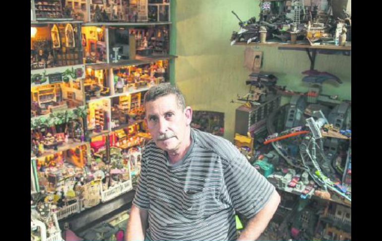 Suplementos | Inició hace 15 años, buscando encantar a sus hijas con una casa de muñecas Alfredo Briones el hacedor de escenarios en miniatura Hace 15 años buscó la forma de encantar a sus hijas con una bella casa de muñecas; hoy emplea su tiempo libre en crear pequeños rincones donde la imaginación florece Por: EL INFORMADOR 17 de agosto de 2014 - 00:26 hs La imaginación se muestra en la realización de las maquetas que participa en la exposición colectiva 'Las buenas intenciones'. / GUADALAJARA, JALISCO (17/AGO/2014).- Esta es la historia de Alfredo Briones, un vigilante de 53 años de edad que en su tiempo libre se dedica a hacer escenarios en miniatura. La solvencia técnica y la imaginación que este Lemuel Gulliver contemporáneo muestra en la realización de sus maquetas llegó a los oídos del curador Carlos Ashida, quien lo invitó a participar en la exposición colectiva Las buenas intenciones, que estará en el Instituto Cultural Cabañas hasta mediados de noviembre. UNO Empecé a hacer escenarios en miniatura hace 15 años, cuando le compramos una casita pequeña a mi hija Ana Nayeli. Tenía 12. En noviembre va a cumplir 27. Entonces voy a cumplir 15 años ahora para Navidad. Porque precisamente fue para Navidad que le compramos la casita. Mi nombre es Alfredo Briones. Tengo 53 años de edad. Desde hace 20 trabajo como vigilante. El jueves pasado trabajé todo el día, de siete y media a siete y media. Hago dos horas de ida y dos de venida de mi casa a la chamba. En días como esos no tengo chance de hacer nada. Pero cuando descanso le dedico cinco o seis horas. Esta es la fachada de la casita, amarilla. Es la pura fachadita. La que le regalamos en Navidad a mi hija. Un día que fuimos a Tonalá, los niños fueron los que empezaron: “Mira, hazle la cocinita, haz esto, haz lo otro”. Fuimos poco a poco haciendo. Las piezas las encuentro en los tianguis. Veo algún objeto y ya de ahí desarrollo la idea. Mira, éstas me las encontré en el Baratillo. Se las compré a un muchacho. Están pintadas a mano. Es como una corte egipcia. Yo le compré los monitos al muchacho y de ahí se me ocurrió ir poniendo todo lo demás. Hay unos tianguis muy buenos cada tres semanas. Voy mucho al tianguis de San Pedrito. Los lunes voy al de San Isidro. Ahí hay mucho coleccionista de todo esto de Lego, de la Guerra de las Galaxias... Todas estas herramientas son de metal. Al tener una de ellas se me ocurrió hacer un taller. Primero hice el de carpintería. Mira, aquí está. Y aquí está el de mecánica. Éste es un salón de té. Se me ocurrió de unas japonesitas que compré, unas monitas. Cuando vino Carlos Ashida me lo habían destrozado los niños. Lo dejé allí, a un lado, y lo patearon. Lo destruyeron y lo volví a hacer otra vez. También se me ocurrió la pastelería. Y luego dije: “Bueno, voy a hacer la panadería”. Esto es como una tienda de modas, de puras cositas que me he encontrado: sombreritos, cosas para dama. Deja prender la luz. Esto de acá abajo se lo tengo a mi nieto. Porque tengo un nieto de siete años. Se llama Saúl Ezequiel. Ésta es la tienda de discos y ésta es la escuela de ballet. Éste es el taller de modas y éste es el salón de belleza. Déjame quitarle la fachada. Es que como le puse la repisa está más trabajoso. DOS Mi papá tenía un castillo. Hizo la catedral, pero en nieve seca. En realidad hizo pocas cosas. Y de ahí, pues yo tenía la idea de hacer algo. Y poco a poco fue creciendo. Ja, ja, ja. Yo pienso que el gusto por las cosas pequeñas me nació porque mi papá y yo nos íbamos cada domingo al Baratillo. Él compraba varias cosas que le gustaban. Las compraba para mí, pero a él también le gustaban. Él tenía una colección de trenes. Eran trenes grandes. Esa colección me gustaba. Los que yo tengo son chinos, no son como los que él tenía: de esos alemanes, de esos pesadotes que gastaban muchísima luz. La fuente de luz era un aparato pesadísimo. Mira, aquí está el ajedrez: son puros prendedores de aretes que compré en una tienda de manualidades. Teniendo todos los elementos y los objetos, en una semana hago un escenario. Me tardo como un mes buscando las cosas en el tianguis. Y de hecho hay muchas cosas que traigo en la mente. Pero digo: “Voy a buscar, voy a ver si lo encuentro”. Y si no los encuentro, pues veo la forma de hacerlos. En mi taller tengo pulidora, cortadora, taladros, pero lo que más utilizo son el cúter y la segueta de joyero. Por ejemplo, este costurero. Mi idea era encontrar un costurero, pero como no lo encontré, me encontré esta cajita y lo hice yo. Son las madejas de hilo y todo esto lo he estado haciendo. De hecho, como no sabía, me tomó toda una tarde, toda una tarde completa de descanso, para hacer esta cajita nada más, pero también de estar pensando cómo le iba a hacer. Todo lo hice yo. Pegué dos broches y luego ya le fui enredando el hilo. Éstas son de estas bolitas para el pelo, de ésas que tienen un hoyo. Y ya de ahí las fui forrando con el hilo para hacer las madejitas. Esa maquinita la compré en una tienda de miniaturas. Los libros también yo los hice. Si te fijas, no tienen nada. Es la pura pasta. Mira, aquí está la guardería. Ésta es la oficina. Aquí hay otro librero y acá está la computadora. Muy moderna la oficina. Nada se me dificulta. Nada más es que se me venga la idea de cómo lo voy a hacer y ya lo empiezo a hacer. TRES Mira, empezando aquí está la juguetería, la nevería, la tienda de mascotas, la florería. Este es un bazar, es donde pongo las piezas que me voy encontrando, bonitas, de cerámica. Es como una especie de bazar de alfarería. Aquí está el gimnasio y el cuarto de revelado. Estas fotografías me las encontré en el tianguis de la 74. Es un tianguis grandísimo. En este tianguis fue donde me dijeron que podía encontrar muchas cosas. Voy cada jueves que me toca descansar. Allí he encontrado muchas piezas. Antes ahí te vendían las pi