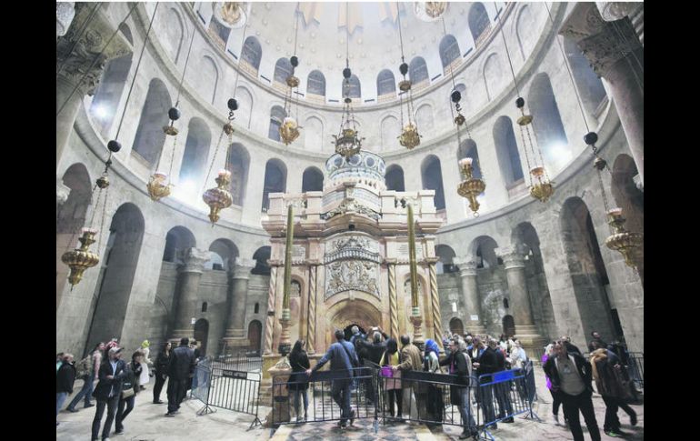 GUADALAJARA, JALISCO (26/MAR/2017).- Un aspecto renovado para un edificio milenario. Así luce la cúpula y el Edículo que protegen la Tumba de Jesucristo o Santo Sepulcro, en Jerusalén, totalmente remodelados tras diez meses de restauración que han servido para recuperar el esplendor de uno de los lugares más sagrado del Cristianismo. La responsable de las obras, Antonia Maropoulou, expresó la finalización de los trabajos “a tiempo” que fueron presentados el miércoles de la semana que termina, con el retiro de los últimos paneles que cubren la zona de obras en el epicentro de la Iglesia del Santo Sepulcro, en la Ciudad Vieja de Jerusalén. Donde la tradición cristiana sitúa el entierro y resurrección de Jesús, un equipo griego liderado por la propia Maropoulou fue quien puso manos a la obra desde el pasado mes de julio en una intervención calificada como de “urgencia” para evitar que el venerado lugar se hundiera.“Ahora se puede ver el color y la textura, las inscripciones, los frescos”, apunta Moropoulou junto a la centenaria estructura de estilo barroco otomano, conocida como Edículo, construida entre 1809-1810 tras un terremoto que dañó gravemente la estructura. Desde entonces, solo se llevaron a cabo restauraciones parciales y es ahora cuando se completa una labor integral, tras un acuerdo entre los tres Custodios responsables de su mantenimiento: el greco-ortodoxo, el armenio apostólico y el católico romano. Además del visible lavado de cara de todo el exterior del armazón, destaca como novedad la cruz greco-ortodoxa sobre lo alto de la cúpula, recién pulida, que no existía antes de la rehabilitación. “Es un símbolo que estaba en el proyecto original del Edículo pero no se puso porque las leyes otomanas prohibían exponer cruces en lugares públicos”, explica el franciscano y arqueólogo, Eugenio Alliata. También se ha abierto una ventana dentro del habitáculo donde está el lecho de Jesucristo que ahora permite a los visitantes ver la piedra original de la cueva donde se socavó la tumba. Los trabajos consistieron en una limpieza profunda de las láminas de mármol que cubrían el Edículo y en reforzar su estabilidad para que garantice la protección de la cueva con el lecho. Los bloques dañados del armazón fueron sido reparados, del mismo modo que se cubrieron las grietas con pegamento, rellenado fisuras y reforzado soportes para un “monumento que durará para siempre”, resaltó la jefa griega de la rehabilitación y profesora de la Universidad Politécnica Nacional de Atenas. A finales de febrero se retiraron las vigas de acero, colocadas por los británicos en 1947 para apuntalar la endeble estructura. El equipo restaurador contó con una financiación total de 6 millones de dólares -el doble de los 3 millones presupuestados-, con un 80% procedente de donaciones del exterior, declaró Bonnie Burnham, ex presidenta del Fondo de Monumentos Mundiales (WMF, por sus siglas en inglés).¿Por qué se dañó?El santuario necesitaba atención urgente tras años de haber estado expuesta a efectos en el medio ambiente como agua, humedad y humo de velas.El Santo Sepulcro en Jerusalén es una de las iglesias más viejas, pues es una construcción del siglo XII, levantada a su vez sobre los restos de otra más antigua, que según expertos data del siglo IV.