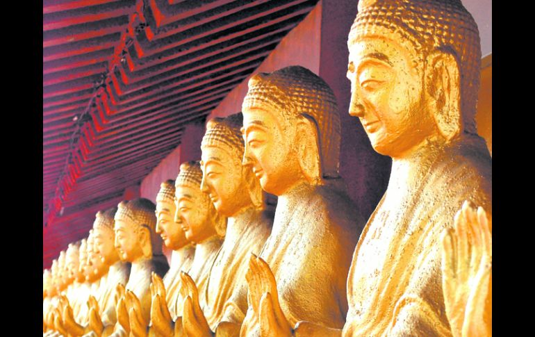 Suplementos | Entre senderos de oro Caminar por la tierra de Amitabha Recorre cada uno de los rincones sagrados de Fo Guang Shan, el monasterio más grande del mundo dedicado a Buda Por: SUN 31 de julio de 2011 - 02:10 hs Caminando en Tierra Pura. EL UNIVERSAL / KAOHSIUNG (31/JUL/2011).- Es imposible estar en la rampa de acceso y no tener la vista fija en él. Su cuerpo bañado en oro es tan pulcro que no hacen falta los rayos del sol para que brille. El Gran Buda Amitabha está ahí, erguido, desde 1967, dentro del primero y más grande monasterio budista de Taiwán. La sonrisa de su rostro amable se puede ver desde cualquier punto del monasterio; Amitabha (luz infinita que ilumina el universo) mide 40 metros de altura, así que cualquiera es pequeño ante él. Pero eso sí, a todos nos alumbra el alma con el ojo de su palma derecha levantada y, con la izquierda hacía abajo, nos da la bienvenida a su mundo, a su montaña, Tierra Pura. Me encuentro con un estudiante de budismo, con su túnica café que lo cubre del cuello a los pies. Inclina su cabeza y pronuncia: “amito fo”, es una forma de decir ¡Oh mi Dios! pero también es un saludo formal entre los creyentes de Buda. Sigue su camino por un jardín de bambúes que se mecen y crujen con el viento. Llego a la recepción, la entrada no se cobra. Sirve para solicitar guías turísticos que hablan inglés, francés, italiano, quizá hasta ruso, pero no español; aunque yo descubrí a Alicia hablándolo, pero muy poquito. Ella es vendedora de la librería. Mientras esperamos el carrito de golf que nos llevará al Templo Principal, me da una breve introducción sobre el lugar que estoy pisando y conociendo por primera y, tal vez, por última vez. Entre libros, videos, discos, postales, plumas, llaveros y nuestro esfuerzo por darnos a entender con el inglés y el castellano, dice que Fo Guang Shan se edificó gracias al Venerable Maestro Hsing Yung. Él ha esparcido la cultura del budismo por todo el mundo, desde Japón hasta Argentina, también a Estados Unidos. Para ser exactos son 170 templos que ha fundado. El maestro Yung tiene 84 años. Su paradero es incierto porque viaja constantemente por todo el mundo, a pesar de su ceguera; yo lo conozco por el retrato que cubre una pared completa de la librería. Este hombre ha transmitido su sabiduría en videos, canciones e incluso en pequeños cuadernos en los que plasma con tinta china frases que alientan, reconfortan e ilustran. Me llevo tres. Cada uno cuesta 650 dólares taiwaneses (263 pesos mexicanos). Alicia dice que son un buen regalo para mis mejores amigas. Buena elección, pues cada una de las frases han sido pintadas a mano por el maestro, incluso llevan su firma en mandarín, en cada una de las hojas de papel chino. El carrito de golf está listo. No hay voz humana que interrumpa la paz de este lugar enclavado en una montaña de la ciudad de Kaohsiung. El canto de los pájaros se escucha más nítido que el sonido THX, así como el correr del agua de las fuentes y de algunas cascadas artificiales con peces de diferentes tamaños y colores. Antes de entrar al Templo Principal debo quitarme los zapatos y guardar absoluto silencio. Tengo que reprimir el sonido de mi asombro al ver a tres budas de seis metros de altura aproximadamente, cada uno bajo un nicho. El maestro Flores, inciensos, dulces, listones rojos y velas son los objetos que la gente ofrenda a Amitabha, sentado en posición de loto en medio del altar. Sus manos están una encima de la otra. Alicia dice que ese mudra (posición) se conoce como samadhi. Indica que él es el único que puede guiar a los fieles a tierra pura después de la muerte. A su derecha está el buda de la Medicina. En su mano izquierda sujeta una flor de loto. Para el budismo ésta tiene cuatro virtudes: fragancia, limpieza, ternura y suavidad; las comparan con las del reino Dharma (lugar donde descansan los maestros): permanencia, regocijo, sabiduría y pureza. La flor también simboliza el corazón. No me atrevo a interrumpir la oración del hombre que se ha reclinado frente a la imagen. Mi guía dice que sólo hay dos cosas que se le pueden pedir al buda de la Medicina: longevidad y salud. A la izquierda está buda Shakyamuni. Su mano derecha sujeta el Mundo Saha. Se refiere a este mundo en el que vivimos llenos de sufrimiento, en donde todos debemos resistir para sobrevivir. Su mano izquierda está doblada con la palma hacia el frente, este mudra significa bendiciones espirituales, gesto de generosidad suprema. Las cuatro paredes que resguardan a las tres deidades están decoradas con 14 mil 860 nichos, cada uno con un buda y el maestro a escala. La irradiación de 10 mil luces amarillas, lo hacen más solemne, místico y sagrado. Salgo de ahí bebiendo el “néctar de Buda”, agua natural con la bendición de Hsing Yung. Eso dice en la botella. Unos monjes me la ofrecen como símbolo de generosidad, hospitalidad y bienvenida a la casa de su dios. Mundo de colores Me paro frente a ese templo. Hasta ahora he admirado las esculturas, incluyendo la de Buda bebé. El 8 de mayo, en la primera luna llena de este mes, según el calendario budista, el mundo celebró el cumpleaños 2 mil 600 del líder que ahora representa una de las religiones más importantes. Ese alto en mi recorrido me sirve para fijar mi atención en la arquitectura del templo, la misma que predomina en todo el monasterio. Techos rectangulares y rojos, con tejas de dos aguas que ven su final en alerones decorados con grecas, budas en relieve, animales y plantas que están protegidos en Taiwán, como la urraca azul, el ciervo, el faisán y plantas, como la flor de loto. Camino por largos pasillos sostenidos con pilares y paredes amarillas. Unos conducen a los dormitorios de los monjes, otros a pequeños templos, tiendas, fuentes y jardines. Atravieso un arco. Una puerta de madera está entre abierta, es el Museo Budista, con reliquias y la historia completa del budismo. Aprendo