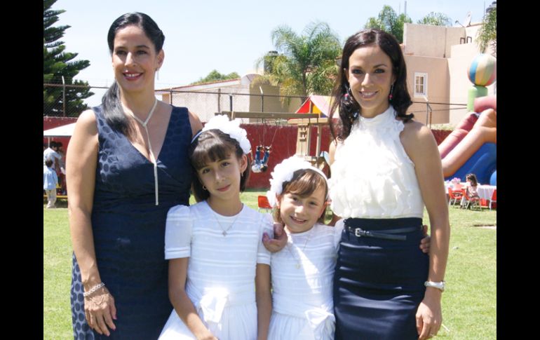 Suplementos | Sacramento Juntas en la Comunión La pequeñas Ana Sofía y Ana Paula Hernández Peregrina recibieron su primera comunión en compañía de familiares y amigos Por: EL INFORMADOR 15 de septiembre de 2011 - 02:20 hs Ana Sofía y Ana Paula con sus madrinas, Lorena y Ana María Peregrina. / GUADALAJARA, JALISCO (15/SEP/2011).- Ana Sofía y Ana Paula Hernández Peregrina celebraron juntas su Primera Comunión en el templo de Nuestra Señora de la Salud, donde estuvieron acompañadas por sus papás, Raúl Hernández y Beatriz Peregrina de Hernández. Ana Sofía eligió como madrina a Lorena Peregrina, mientras que Ana Paula escogió a María Peregrina. El festejo se realizó en Circus para cerca de 250 invitados que disfrutaron un rico desayuno: huevos, chilaquiles, pan de elote, galletas, café y chocomilk. Para el entretenimiento estuvo Toowy con canicas, pedicure, masajes y esferas gigantes. De bolo dieron separadores de libros para las mamás, llaveros para los niños y diademas y moños para las niñas. ¡Felicitaciones! Temas Vida Social Lee También Los mejores eventos de entretenimiento del 10 al 16 de octubre de 2025 Gente Bien Jalisco: Revista del 10 de octubre del 2025 Los mejores eventos de entretenimiento del 3 al 9 de octubre de 2025 IMSS: Así puedes consultar el catálogo de descuentos para el personal Recibe las últimas noticias en tu e-mail Todo lo que necesitas saber para comenzar tu día Registrarse implica aceptar los Términos y Condiciones