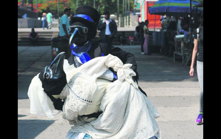 GUADALAJARA, JALISCO (07/MAY/2017).- Cuando Emilie Racine sale a la calle llama la atención hasta del más despistado. No hay manera de no percatarse del talento de esta artista francesa que en cuestión de minutos desaparece su rostro y da paso a dos cabezas de cuervo.Puntual, Emilie llegó al Tianguis Cultural de Guadalajara en la Plaza Juárez. Minutos antes de las 11 de la mañana, comenzó a atraer las miradas de los curiosos que intentaban descifrar lo que la artista pretendía hacer con esas dos cabezas de cuervos y que poco a poco ocultaron su rostro.Algunos acertaron en la suposición de que Emilie ofrecería un espectáculo aunque desconocían de qué manera la artista también interactuaría con el vestuario que se ajustaba a su cuerpo. Por un lado, un elegante traje sastre y por el otro un romántico vestido aperlado.Emilie desapareció por completo. En cuestión de minutos su cuerpo dio paso a una peculiar pareja de cuervos que rápidamente comenzó a realizar ademanes y bailes ante los asistentes del Tianguis Cultural que progresivamente se sumaban a la que fue la primera actividad artística de la vigésima edición del Festival Cultural de Mayo y que ofrecerá activaciones callejeras y musicales hasta el 28 de mayo en diversos espacios públicos y recintos de la ciudad.En su primera visita a Guadalajara, Emilie demostró como la animación callejera se realiza en Francia y cómo artistas como ella no sólo ofrecen su talento interpretativo, pues también se desempeña como productora y diseñadora de su propio vestuario equipado con bocinas en las cabezas de los cuervos.AgéndaloEmilie Racine replicará su show hoy en el Parque Revolución (Federalismo y Vallarta) a las 12:30 horas, en el Parque San Jacinto a las 20:00 horas y en la Calzada Dr. Samuel Joaquín Flores a las 21:00 horas. Acceso gratuito.Por Norma Gutiérrez