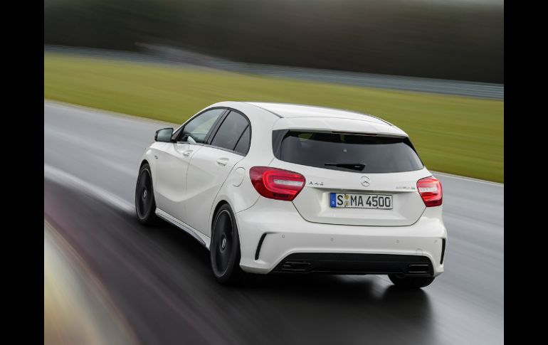 Suplementos | En la muestra del auto, participan los pilotos Nico Rosberg y Lewis Hamilton Mercedes-Benz presenta el Clase A 45 AMG En la muestra del auto, participan los pilotos Nico Rosberg y Lewis Hamilton Por: EL INFORMADOR 21 de mayo de 2013 - 11:58 hs GUADALAJARA, JALISCO (21/MAY/2013).- La marca alemana, Mercedes-Benz, presentó en Europa el Clase A más poderoso de su gama, el A 45 AMG. De la mano de un aparato comercial importante, donde un video comercial es protagonizado por los pilotos de Fórmula Uno del equipo Mercedes, Lewis Hamilton y Nico Rosberg, quienes hacen de carta de presentación de este modelo. El auto pretende ser tan radical como lo que lleva bajo el cofre. Por ejemplo, el motor turbo de 2.0 litros expulsa 360 caballos de potencia, y un torque de 450 newton-metro. Con esto, acelera de 0 a 100 km/h en 4.6 segundos y la velocidad tope es de 250 km/h. El consumo mixto homologado, según Mercedes-Benz, es de 6.9 litros a los 100 kilómetros y unas emisiones de 161 g/km de CO2 (dióxido de carbono). Los cambios van al volante y se conectan a una caja automática Speedshift DCT AMG, de siete velocidades. Por otro lado, cuenta con tres modos de manejo: de desconexión de cilindros, Race Start y función de doble embrague, para prestaciones más deportivas. El equipamiento lleva el paquete AMG disponible en todo el interior, con un tapizado mixto de tela y piel, volante tapizado con cuero napa, y costuras en color rojo. Pero eso no es todo, Mercedes incorpora un par de asientos AMG Performance, para los Edition 1, disponibles en Europa. De esta forma, los precios por el Mercedes-Benz Clase A 45 AMG, van desde los 54 mil 750 euros, hasta los 63 mil 566 euros. EL INFORMADOR / MARIO CASTILLO Temas Lewis Hamilton Autos Mercedes Benz Lee También El Gobierno chino ya sabe que debe mejorar sus autos MINI Countryman Se All4: Para la familia urbana Jeep Wrangler Rubicon 392 será sólo para 100 privilegiados Mercedes anuncia cuál será el futuro de sus pilotos en la F1 Recibe las últimas noticias en tu e-mail Todo lo que necesitas saber para comenzar tu día Registrarse implica aceptar los Términos y Condiciones