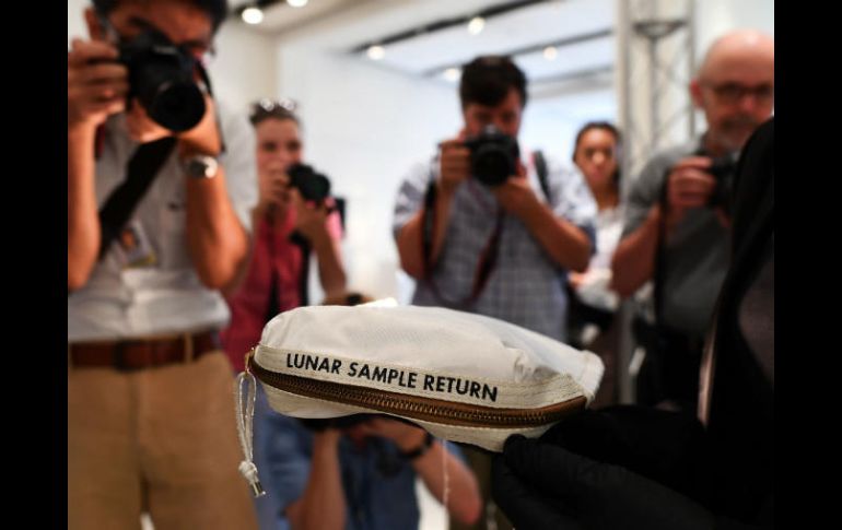 NUEVA YORK, ESTADOS UNIDOS (20/JUL/2017).- Una bolsa utilizada por Neil Armstrong para recolectar las primeras muestras de la luna, que casi terminó en la basura y luego fue blanco de una batalla legal, fue vendida el jueves por Sotheby's por 1.8 millones de dólares.Trazas de polvo lunar y pequeñas rocas están encastradas en esta bolsa, el único artefacto de la misión Apolo 11 en manos privadas, y que fue subastada en el 48º aniversario del primer alunizaje en 1969.El rematador Joe Dunning presentó el lote como "un artefacto excepcionalmente raro del mayor logro de la humanidad".Se vendió a un comprador anónimo por teléfono, tras una puja de apenas cinco minutos.Su dueño anterior era una abogada de Illinois que la compró en 2015 por 995 dólares.Pero incluso con el premium de comprador sumado al precio de martillo de 1.5 millones de dólares, la bolsa no alcanzó su precio de venta estimado, que era de dos a cuatro millones de dólares.Luego del regreso del Apollo 11 a la Tierra, casi todo el equipamiento de la misión fue enviado al Smithsonian, el mayor museo del mundo, en Washington DC. Pero un error de inventario dejó fuera a la bolsa, que languideció en una caja en el Centro Espacial Johnson.El personal iba a tirarla, pero luego fue ofrecida a un coleccionista que tenía un museo espacial en Kansas y que la guardó sin saber de dónde provenía.Cuando el coleccionista fue luego condenado por robo, fraude y lavado de dinero, el FBI incautó la caja de su garage para subastarla en busca de compensación financiera, junto a otros activos.Pero la bolsa fue ofrecida cuatro veces en venta, antes de ser comprada por la abogada de Illinois.Al percibir manchas oscuras dentro, la envió a la NASA para que fuera analizada, y la agencia espacial estadounidense confirmó en 2016 que era en efecto polvo lunar obtenido tras el alunizaje del Apollo 11, y que la bolsa pertenecía a la misión.Comenzó entonces una batalla legal por la propiedad de la bolsa que terminó cuando un juez federal ordenó a la NASA retornar la bolsa a la abogada, que concluyó este jueves un millonario negocio.