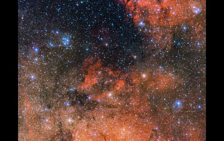 BERLÍN, ALEMANIA (10/AGO/2016).- El telescopio de rastreo (VLT, por sus siglas en inglés) del Observatorio Austral Europeo (ESO) ha logrado capturar una gigantesca imagen del cúmulo de estrellas conocido como Messier 18 -en la constelación de Sagitario-, un laboratorio cósmico perfecto para estudiar la vida y la muerte de las estrellas.Esta imagen de 615 megapíxeles captada por este telescopio instalado en el Observatorio Paranal, en Chile, y difundida hoy por el ESO desde su sede central en la ciudad alemana de Garching, muestra un puñado de llamativas estrellas azules y nubes rojas de hidrógeno ionizado brillante y oscuros filamentos de polvo. Los trazos oscuros que serpentean a través de la imagen son los turbios hilos de polvo cósmico que bloquean la luz de las estrellas distantes.En las débiles nubes rojizas el gas brilla porque las estrellas jóvenes están muy calientes y emiten una intensa luz ultravioleta que arranca los electrones del gas circundante.Eso hace que se emita el débil resplandor que se ve en la imagen.El Messier 18, un cúmulo abierto de astros que se formaron juntos a partir de la misma nube masiva de gas y polvo, fue descubierto en 1764 por Charles Messier. Se trata de estrellas hermanas, pues sólo son diferentes en cuanto a su masa, no en cuanto a la distancia que las separa de la Tierra o a su composición.Se conocen más de mil cúmulos abiertos dentro de la Vía Láctea con una amplia gama de propiedades, tamaños y edades, que proporcionan a los astrónomos pistas sobre cómo se forman, evolucionan y mueren las estrellas.En Messier 18 los colores azul y blanco de la población estelar indican que las estrellas del cúmulo son muy jóvenes (probablemente tienen solamente alrededor 30 millones años de edad).Actualmente, los astrónomos saben que la mayoría de las estrellas se forman en grupos a partir de la misma nube de gas que colapsó sobre sí misma debido a la fuerza de atracción de la gravedad.La nube de polvo y gas remanente, o nube molecular, envuelve a las nuevas estrellas y a menudo es empujada por sus fuertes vientos estelares, lo que debilita la fuerza gravitatorias que las enlaza.Con el tiempo, las hermanas estelares (como las de la imagen), unidas por débiles lazos, acaban separándose y tomando caminos diferentes a medida que interaccionan con otras estrellas vecinas o con nubes masivas de gas.