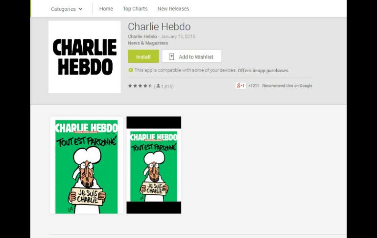 Tecnología | La app incluye la portada de su último número, que ha resultado ser muy polémica 'Charlie Hebdo' lanza nueva aplicación La app incluye la portada de su último número, que ha resultado ser muy polémica Por: EL INFORMADOR 20 de enero de 2015 - 17:09 hs La app está disponible de manera gratuita, y hasta el momento lleva más de 50 mil descargas. ESPECIAL / Google Play Store GUADALAJARA, JALISCO (20/ENE/2015).- La revista satírica francesa ' Charlie Hebdo' ha lanzado una nueva aplicación disponible para iOS, Android y Windows. A poco menos de una semana de haber lanzado su primer número tras el ataque terrorista, la revista logró sacar su aplicación desarrollada por el equipo del periódico francés 'Le Monde'. En ella incluyen su número más reciente, cuya portada es protagonizada por Mahoma, a quien vemos con una lágrima en su rostro y un cartel con la leyenda ''Je suis Charlie''. En la descripción de la aplicación, se lee: Porque la pluma siempre será mejor que la barbarie... Porque la libertad es un derecho universal... Usa la aplicación oficial para leer Charlie Hebdo, y apóyanos comprando el más reciente número, publicado el 14 de enero de 2015, o bien, comprando una suscripción''. Por esta ocasión, la revista hizo una excepción y tradujo su último número al inglés, pero deja claro que los números siguientes estarán disponibles sólo en francés. La app está disponible de manera gratuita, y hasta el momento lleva más de 50 mil descargas. EL INFORMADOR / ALEJANDRA GALLARDO Temas Internet Francia Android Aplicaciones Lee También ¿Cuáles son los riesgos de que el SAT vigile Tinder, Bumble y otras apps de citas? SAT: ¿Por qué podrían vigilar datos de empresas y usuarios? Así puedes saber si una app está caída y verificar que no solo te pasa a ti Los mejores MEMES sobre la caída masiva de Didi Recibe las últimas noticias en tu e-mail Todo lo que necesitas saber para comenzar tu día Registrarse implica aceptar los Términos y Condiciones