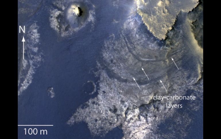 Tecnología | Respalda las teorías de que el planeta rojo puede haber albergado vida Científicos de EU hallan evidencia de un antiguo lago en Marte Muestran huellas de carbonato y minerales de arcilla, generalmente formados en presencia de agua Por: AFP 20 de enero de 2013 - 15:34 hs Aseguran que el lago era probablemente alimentado por aguas subterráneas. REUTERS / WASHINGTON, ESTADOS UNIDOS (20/ENE/2013).- Una nave espacial estadounidense que orbita Marte encontró pruebas de la existencia de un antiguo lago de cráter alimentado por aguas subterráneas, lo que respalda las teorías de que el planeta rojo puede haber albergado vida, informó la NASA este domingo. Informaciones emanadas del espectrómetro de la NASA Mars Reconnaissance Orbiter (MRO) muestran huellas de carbonato y minerales de arcilla, generalmente formados en presencia de agua, en la parte inferior del cráter McLaughlin, a 2.2 kilómetros de profundidad. "Estas nuevas observaciones sugieren la formación de carbonatos y arcilla en un lago alimentado por aguas subterráneas en la cuenca cerrada del cráter", señaló la NASA a propósito de los hallazgos, publicados en la edición online de la revista Nature Geoscience. "Algunos investigadores proponen que el interior del cráter captura el agua", señaló la agencia espacial estadounidense, y agregó que "en la zona subterránea podría haber habido ambientes húmedos y potenciales hábitat". "El cráter carece de canales de gran afluencia, por lo que el lago era probablemente alimentado por aguas subterráneas", dijeron los científicos. Temas Marte NASA Astronomía Recibe las últimas noticias en tu e-mail Todo lo que necesitas saber para comenzar tu día Registrarse implica aceptar los Términos y Condiciones