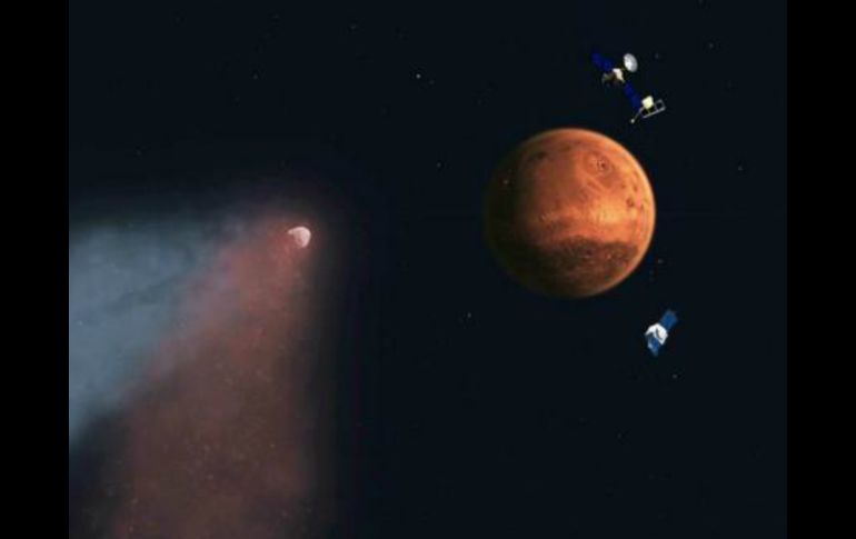 Tecnología | Siding Spring pasó muy cerca del planeta rojo, iluminando el cielo con miles de bólidos Cometa causa lluvia de meteoritos en Marte: NASA Siding Spring pasó muy cerca del planeta rojo, iluminando miles de bólidos por más de una hora Por: AP 7 de noviembre de 2014 - 16:20 hs El fenómeno alteró la atmósfera marciana después de depositar todo tipo de metales, causando un resplandor amarillo. TWITTER / @Nasa. WASHINGTON, ESTADOS UNIDOS (07/NOV/2014).- Un cometa prístino distante causó el mes pasado un extraordinario espectáculo de fuegos artificiales en el cielo marciano. Según nueva información de la NASA proveniente de satélites que circundan Marte, cuando el cometa Siding Spring pasó muy cerca del planeta rojo, bombardeó con toneladas de polvo el cielo marciano, al que iluminaron miles de bólidos encendidos por hora. El fenómeno alteró la atmósfera marciana después de que depositara todo tipo de metales y causara un extraño resplandor amarillo el 19 de octubre. La precipitación de polvo del cometa sobre la superficie del planeta rebasó las previsiones de los científicos de la NASA. El científico Nick Schneider, de la Universidad de Colorado, dijo que para contemplar la lluvia de meteoritos ”quizá una tormenta de éstas” hubiera sido necesario hacerlo con ojos humanos desde suelo marciano. Fue un bombardeo de luz incluso imposible de detectar para las cámaras de los exploradores rodantes que se encuentran en Marte. Dijo que el fenómeno posiblemente fue impresionante. La NASA difundió el viernes la información. Temas Marte NASA Astronomía Cometa Lee También Asteroide pasó muy cerca de la Tierra; esto ocurrió Estos son los nuevos datos revelados del cometa 3I/ATLAS ¿Cuál es la mejor hora para ver la lluvia de estrellas HOY en México? ¿Cuándo y cómo observar la próxima lluvia de estrellas en México? Recibe las últimas noticias en tu e-mail Todo lo que necesitas saber para comenzar tu día Registrarse implica aceptar los Términos y Condiciones