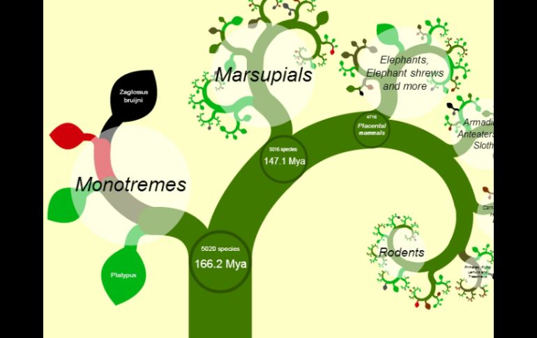Tecnología | El proyecto es titulado ''OneZoom'' Crean el primer árbol de la vida digital con hasta cinco mil 200 especies Es una página web en la que se pueden consultar las relaciones entre miles de especies animales Por: EFE 16 de octubre de 2012 - 20:52 hs LONDRES, INGLATERRA (16/OCT/2012).- Científicos británicos y estadounidenses han creado el primer árbol de la vida digital, una página web en la que se pueden consultar las relaciones entre miles de especies animales y remontarse hasta el ancestro común del que descienden. El proyecto, titulado "OneZoom" y explicado hoy en la revista estadounidense "PLOS Biology", pretende agrupar todas las especies vivas de las que se tiene conocimiento, un objetivo para el que habrá que esperar aún varios años. Este mapa interactivo, que se podrá consultar a partir de hoy en www.onezoom.org, es una herramienta que facilitará el estudio de la evolución de la vida y permitirá observar con más detalle las ramificaciones de las especies desde que el primer organismo vivo apareció sobre la Tierra. Desde que Darwin publicase en 1859 su teoría de la evolución en "El origen de las especies", los biólogos han trabajado en la elaboración de mapas arbóreos que permitiesen relacionar a todas las especies, pero el gran volumen de información disponible dificultaba el diseño de estos esquemas sobre el papel. La tecnología utilizada por los mapas digitales, que permiten acercarse y alejarse sobre un punto determinado, inspiró a los expertos para elaborar este árbol de la vida interactivo, cuya interfaz emula la de Google Earth. "Después de décadas de estudio, los científicos estamos probablemente a un año de terminar el primer borrador completo del árbol de la vida. Sería una vergüenza si una vez diseñado no tuviéramos forma de visualizarlo", explicó James Rosindell, biólogo del Imperial College de Londres y uno de los promotores del proyecto junto a Luke Harmon, de la Universidad estadounidense de Idaho. Juntos han logrado reunir hasta cinco mil 200 especies y en un futuro esperan completar este mapa digital con todas las restantes, así como con fotografías de los seres vivos o de sus fósiles. "OneZoom" está diseñado en forma de árbol frondoso, con un tronco robusto que representa las primeras etapas de la vida en la Tierra, que se va ramificando a medida que las especies se diversifican y que cuenta con un gran número de hojas con la información propia de cada ser vivo. Al hacer zoom sobre un animal, planta u organismo, se despliegan datos como el tiempo que ha pasado desde su aparición, el riesgo de extinción que sufre, el número de ejemplares que quedan o una lista de enlaces a páginas de internet con más información. Según Joel Cracraft, comisario del Museo de Historial Natural de Nueva York, esta "herramienta de valor incalculable revolucionará la forma de enseñar y entender el árbol de la vida". Temas Medio Ambiente Páginas Web Animales Lee También La NFL explica elección de Bad Bunny para el Super Bowl LX La Gen Z: otra lección para Morena La paz “se le cae a pedazos” Amazon falla: ¿Qué plataformas se cayeron este 20 de octubre en México? Recibe las últimas noticias en tu e-mail Todo lo que necesitas saber para comenzar tu día Registrarse implica aceptar los Términos y Condiciones