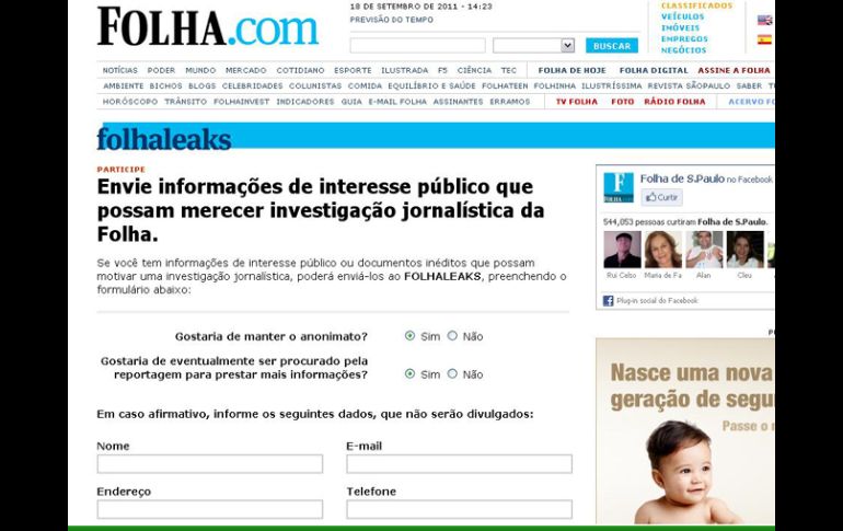 Tecnología | El canal ha sido bautizado como 'Folhaleaks' Crean web para recopilar filtraciones de lectores La iniciativa permitirá al lector enviar informaciones y documentos inéditos capaces de generar reportajes de investigación elaborados por el equipo del periódico Por: EFE 18 de septiembre de 2011 - 11:34 hs Folhaleaks ha sido creado para ampliar el acceso de la sociedad a informaciones relevantes. ESPECIAL / SAO PAULO, BRASIL (18/SEP/2011).- El diario brasileño Folha de Sao Paulo lanzó hoy una iniciativa electrónica para recopilar datos y filtraciones susceptibles de una investigación periodística, canal que ha sido bautizado como " Folhaleaks" en referencia al célebre portal fundado por Julian Assange. La iniciativa, accesible a partir de la edición electrónica del rotativo, tiene el objetivo de ser "una herramienta que permitirá al lector enviar informaciones y documentos inéditos capaces de generar reportajes de investigación elaborados por el equipo del periódico". Los usuarios podrán volcar documentos en diferentes formatos y conservar su anonimato, mientras el rotativo se compromete a llevar a cabo una labor de verificación, contraste y confirmación de las informaciones filtradas, según la web del diario. "Folhaleaks ha sido creado para ampliar el acceso de la sociedad a informaciones relevantes, estrechando todavía más la relación de los lectores con la producción de reportajes de interés público", declaró el editor ejecutivo de Folha, Sergio Davila. La iniciativa comenzó a rodar después de que esta misma semana el periódico denunciara en diferentes días irregularidades en el uso de dinero público supuestamente cometidas por el ministro de Turismo de Brasil, Pedro Novais, unas revelaciones que le costaron el cargo al político. Con su programa Folhaleaks, el rotativo emula al portal de internet WikiLeaks, fundado por el australiano Julian Assange, que ha publicado miles de documentos oficiales y secretos sobre las guerras en Irak y Afganistán, así como comunicaciones diplomáticas del Departamento de Estado de Estados Unidos. Temas Periodismo Brasil WikiLeaks Julian Assange Lee También La labor continúa Continúa la celebración 108 de EL INFORMADOR La sociedad jalisciense reconoce a EL INFORMADOR Guadalajara: el corazón mundialista en el año 70 Recibe las últimas noticias en tu e-mail Todo lo que necesitas saber para comenzar tu día Registrarse implica aceptar los Términos y Condiciones