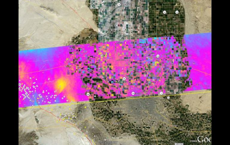 Tecnología | Se originó por la tensión en la corteza terrestre Crece falla por sismo en Baja California: NASA Imágenes del radar UAVSAR demuestran un desplazamiento de 11.9 centímetros de abril a la fecha Por: SUN 6 de agosto de 2010 - 19:20 hs La imagen muestra una franja de 87 por 20 kilómetros sobrepuesta sobre un mapa de la zona de Google Earth. NASA / BAJA CALIFORNIA (06/AGO/2010).- Nuevas imágenes aéreas del sureste de California, cerca de la frontera de Estados Unidos con México, tomadas por un radar de la NASA, muestran que la superficie de la tierra continúa deformandose luego del temblor del 4 de abril en Baja California. Los datos del radar UAVSAR de la agencia espacial estadounidense (NASA) detectaron que la falla a la que se le conoce como"deslizamiento provocado" se originó por la tensión en la corteza terrestre, luego de que algunas capas se rompieran por la presión del sismo. Investigadores del Laboratorio de Propulsión a Chorro (JPL, por sus siglas en inglés) crearon mapas denominados interferogramas que combinaron datos obtenidos el 13 de abril y el 1 de julio de 2010. La imagen muestra una franja de 87 por 20 kilómetros sobrepuesta sobre un mapa de la zona de Google Earth. Cada contorno de color representa 11.9 centímetros de desplazamiento de la superficie. Las líneas marcadas en rojo representan el trazo de la falla y los puntos en amarillo y naranja los desplazamientos originados por las réplicas. Una ampliación del interferograma se centra al oeste Caléxico, donde ocurrieron la mayor parte de las réplicas. La imagen abarca una superficie de cerca de 28 por 18 kilómetros y revela muchos pequeños "cortes" o discontinuidades, las cuales son causadas por movimientos del terreno en pequeñas fallas que se produjeron desde 13 de abril, que van desde menos de un centímetro a unos pocos centímetros. Las fallas que han sido previamente asignadas por Estados Unidos y California, a través de estudios geológicos de 2009, están representados por delgadas líneas de color. El equipo del JPL utilizó una técnica que detecta cambios mínimos en la distancia entre la aeronave que traslada el radar y el suelo. El radar UAVSAR vuela a una altitud de 12.5 kilómetros en un avión Gulfstream III de la NASA. La geofísica Andra Donnellan, encargada del proyecto del UAVSAR, dijo que que el último vuelo proporciona nuevos y valiosos datos que los investigadores pueden utilizar para supervisar el reajuste permanente de la corteza terrestre después del gran terremoto de abril. "La región fue monitoreada con UAVSAR para supervisar si la actividad continuó, incluso las mociones de tráfico (movimientos de las fallas que no dan lugar a terremotos), para detectar cómo la corteza terrestre se reajusta, así como detectar grandes réplicas, tales como la magnitud 5.7 que se observó el 14 de junio". Una geofísica de la NASA, Andrea Donellan, aseveró que el proyecto de radar en sobrevuelo ha estado renovando el mapa de la Falla de San Andrés, desde la zona de San Francisco a la frontera de California y México cada seis meses. El plan también actualiza mapas de otras fallas al oeste de San Andrés, como la de San Jacinto y Elsinore. Un vocero de la NASA, Alan Buis, declaró que el proyecto de mapas desde el radar concluye en la frontera de California, no ingresa a territorio mexicano. No es raro que los sismos más poderosos muevan las ciudades de lugar. Después del terremoto de magnitud 8.8 ocurrido en Chile a comienzos de este año, la ciudad de Concepción se movió al menos tres metros al poniente. Temas NASA Sismos Astronomía Recibe las últimas noticias en tu e-mail Todo lo que necesitas saber para comenzar tu día Registrarse implica aceptar los Términos y Condiciones